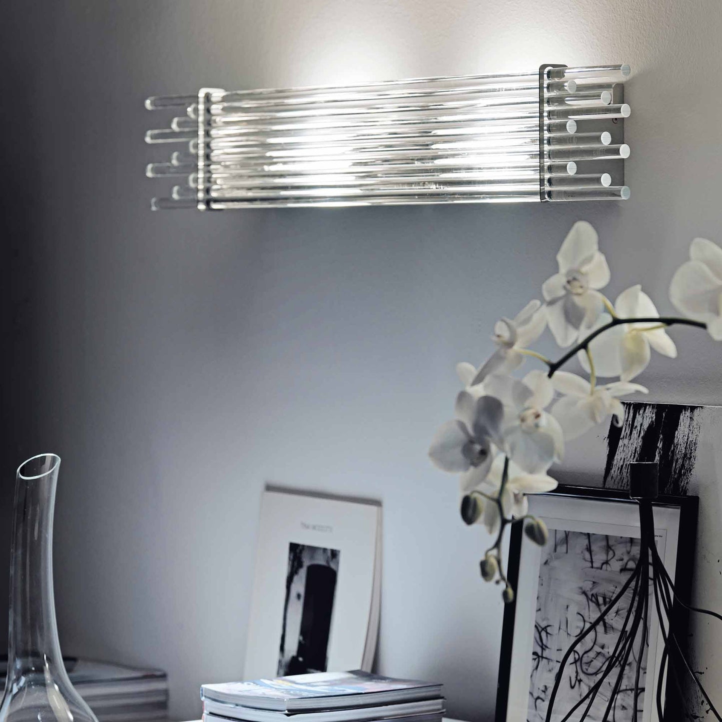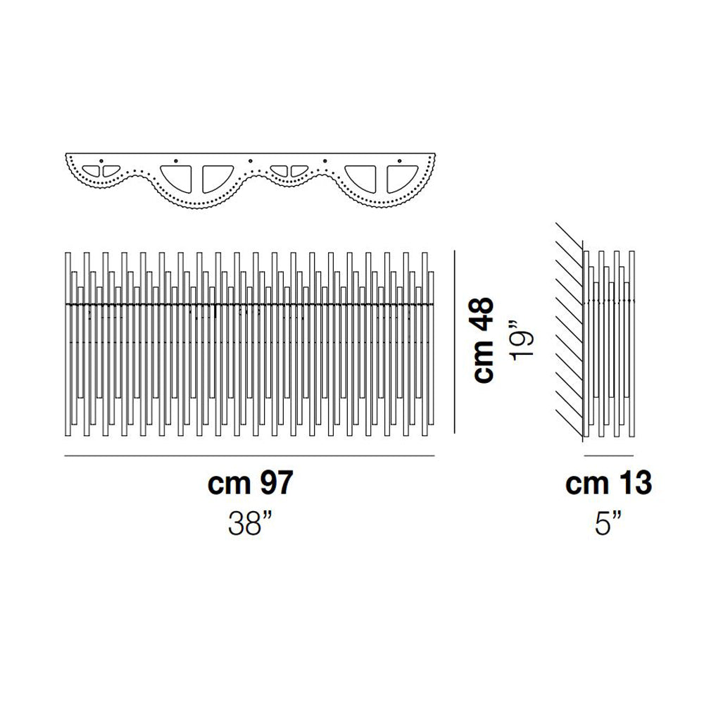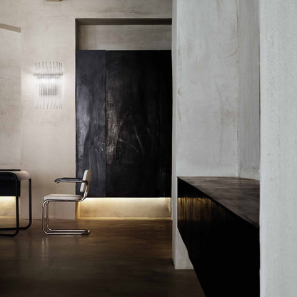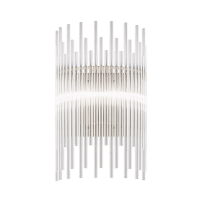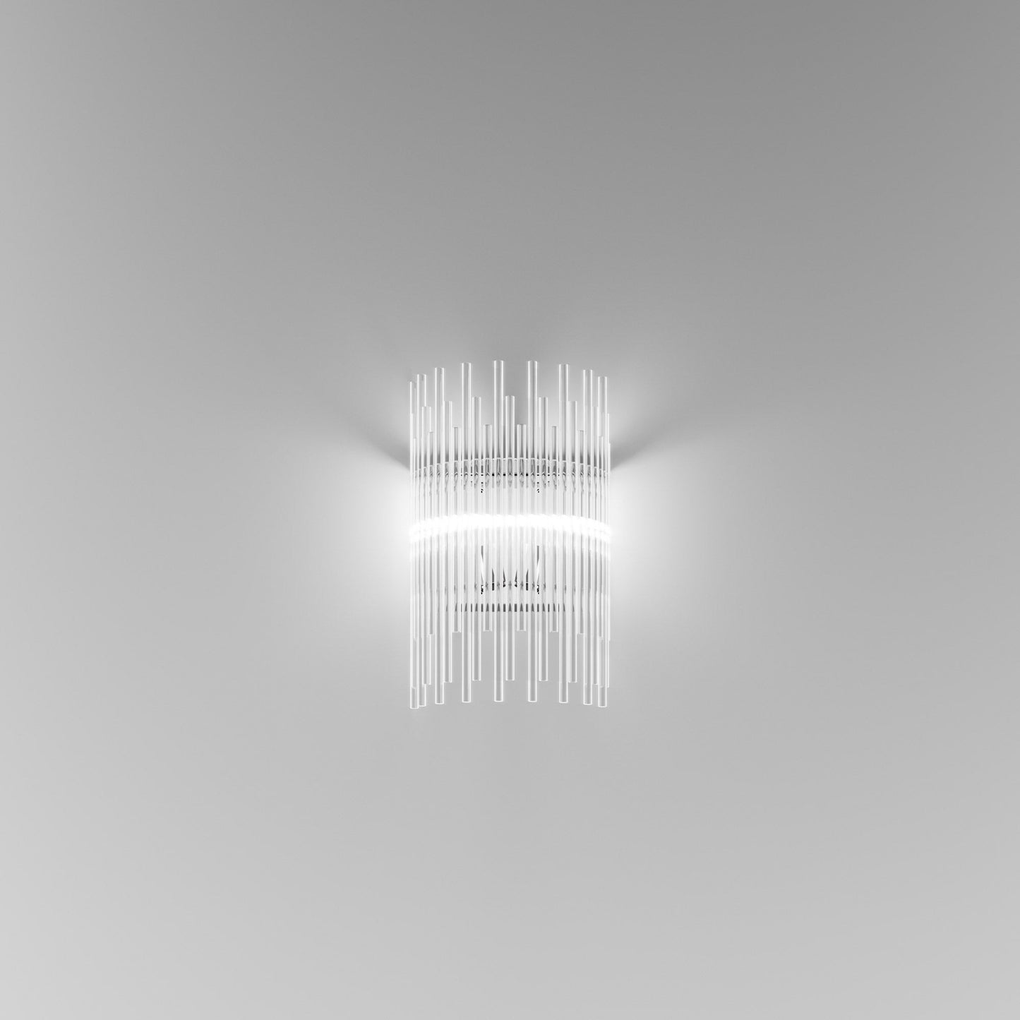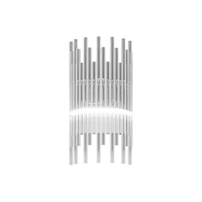 Indulgent glam design creates sheer elegance in lighting. The Diadema Wall Light from Vistosi offers a bit of organic artistry reminiscent of Arctic ice, fashioning graduated strips of clear glass that reflect light with sparkling radiance. This wall light lifts the sophistication level of a modern space with gallery-inspired decadence.