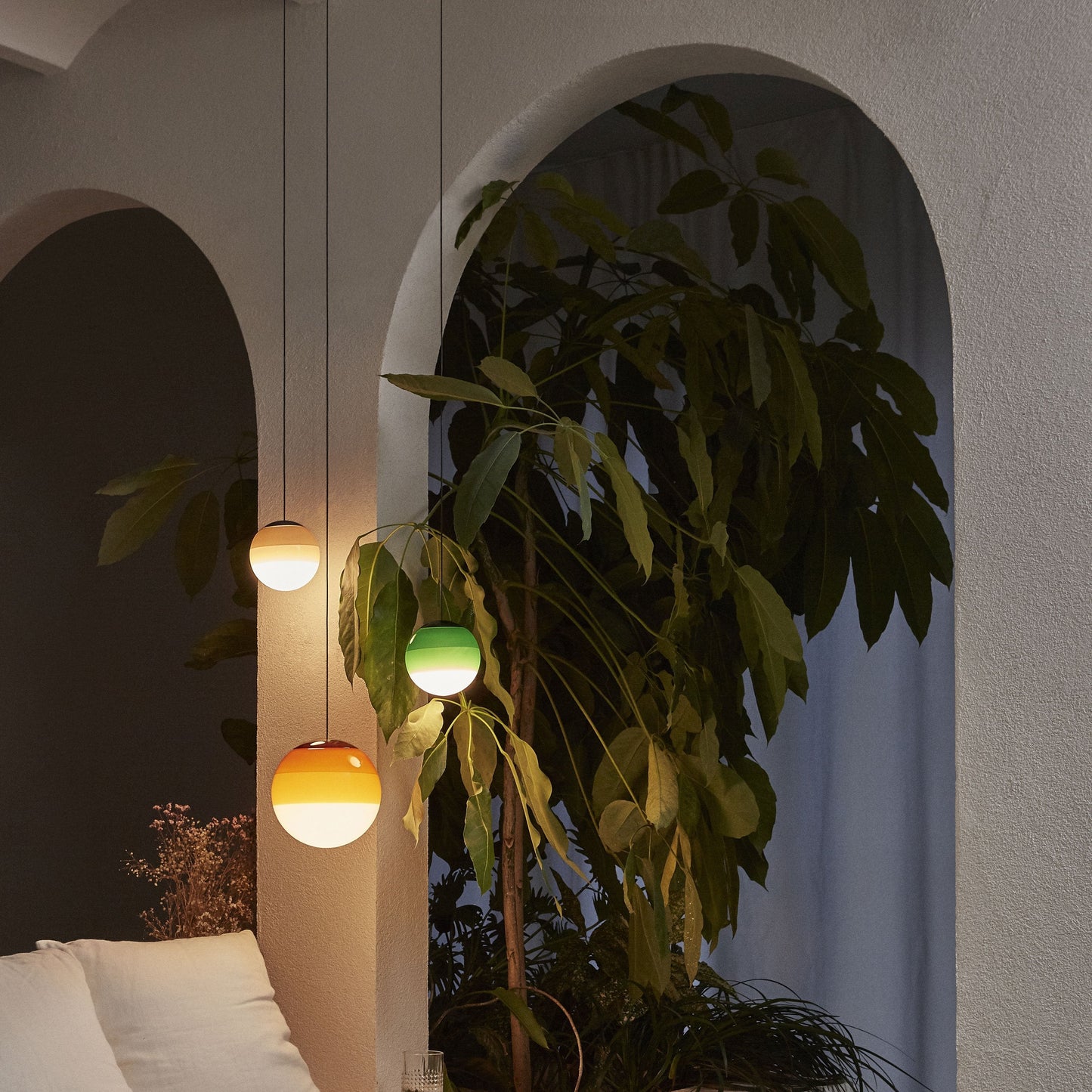 Striking color sets the tone for the elegant simplicity of the Dipping Light LED Pendant Light from Marset. Bands of color create an ombre effect for the spherical glass shade, creating engaging personality and character in your kitchen, living area or dining room.