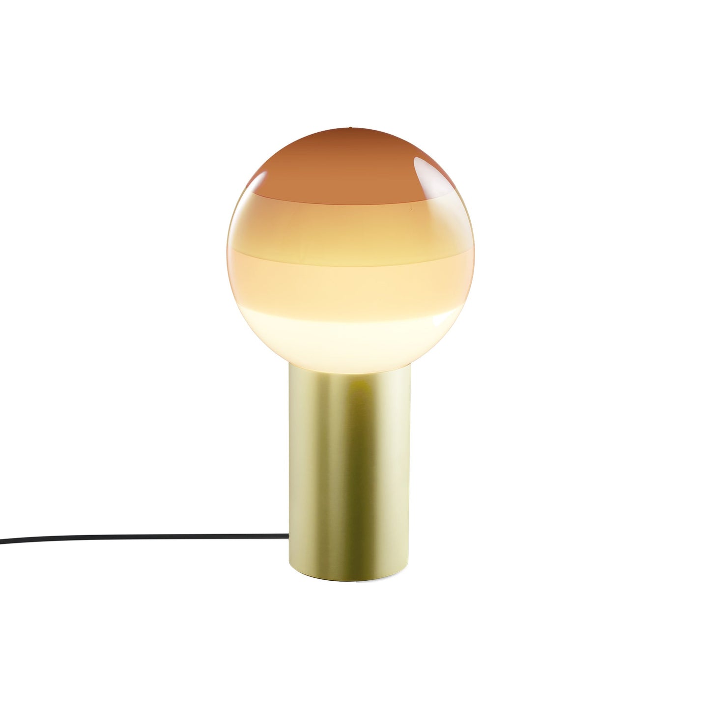 Finish options complete the inspiring possibilities of the Dipping Light LED Table Lamp from Marset, a modern light source delivering basic shaping and a fun, festive color-blending effect. Simple yet artistically grounded, its design featuring gradient color striping on its glass sphere shade and a metal cylinder base offers tempting ambiance when turned off or on.