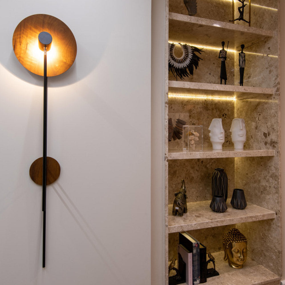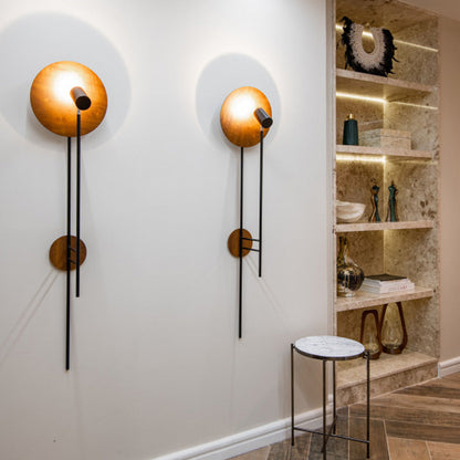 Evoking a balloon floating across the sky, the Dot Vertical Wall Light from Accord Lighting is a stellar combination of sculpture and glowing warmth. A round reflector bounces illumination and perfectly mirrors its wall plate while straight supports create contrast and dimensionality for an unforgettable silhouette.