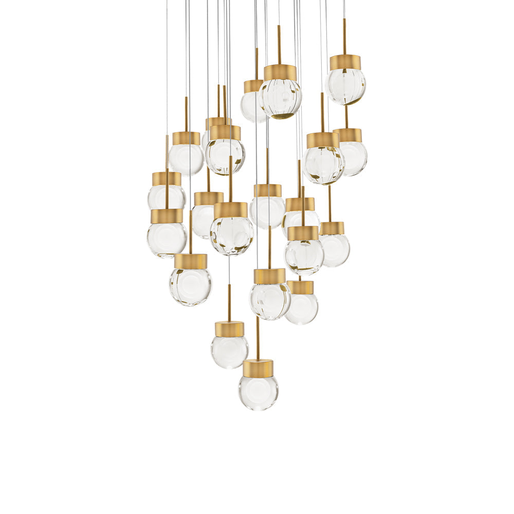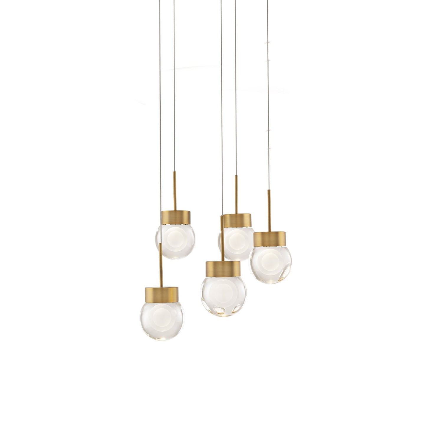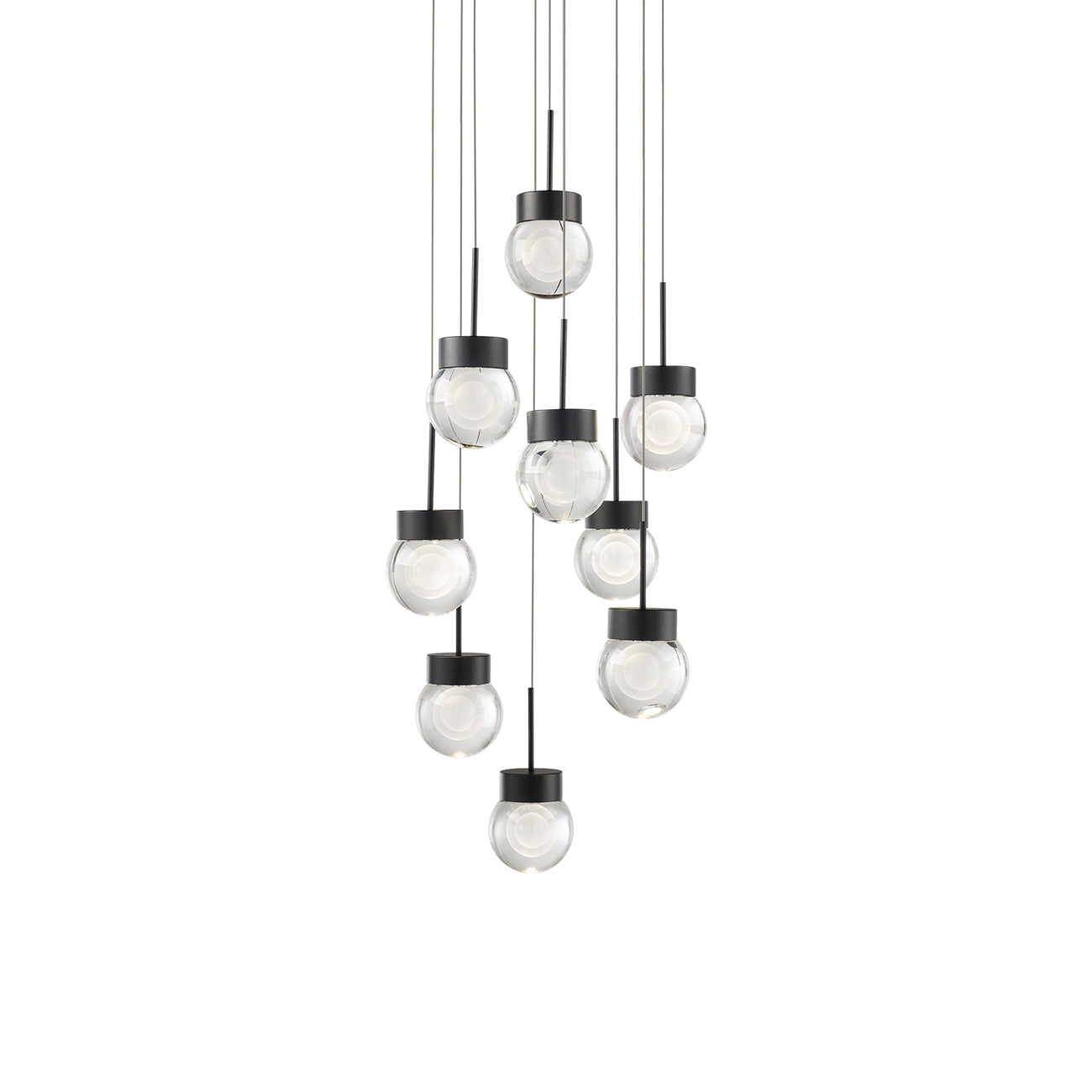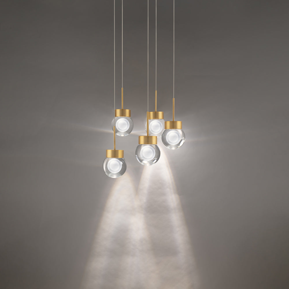 A collection of petite orbs are laser etched to create depth and dimensionality for the Double Bubble Round LED Multi Pendant Light from Modern Forms. Energy efficient LEDs are tucked within metal rings above each orb, casting glittering illumination over your living or dining space. Orbs are suspended at varying heights to create a whimsical presentation that offers both playful energy and impeccable elegance.