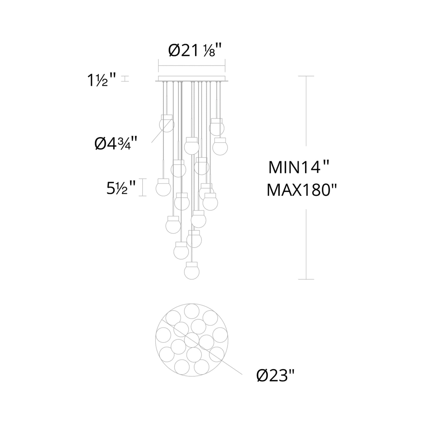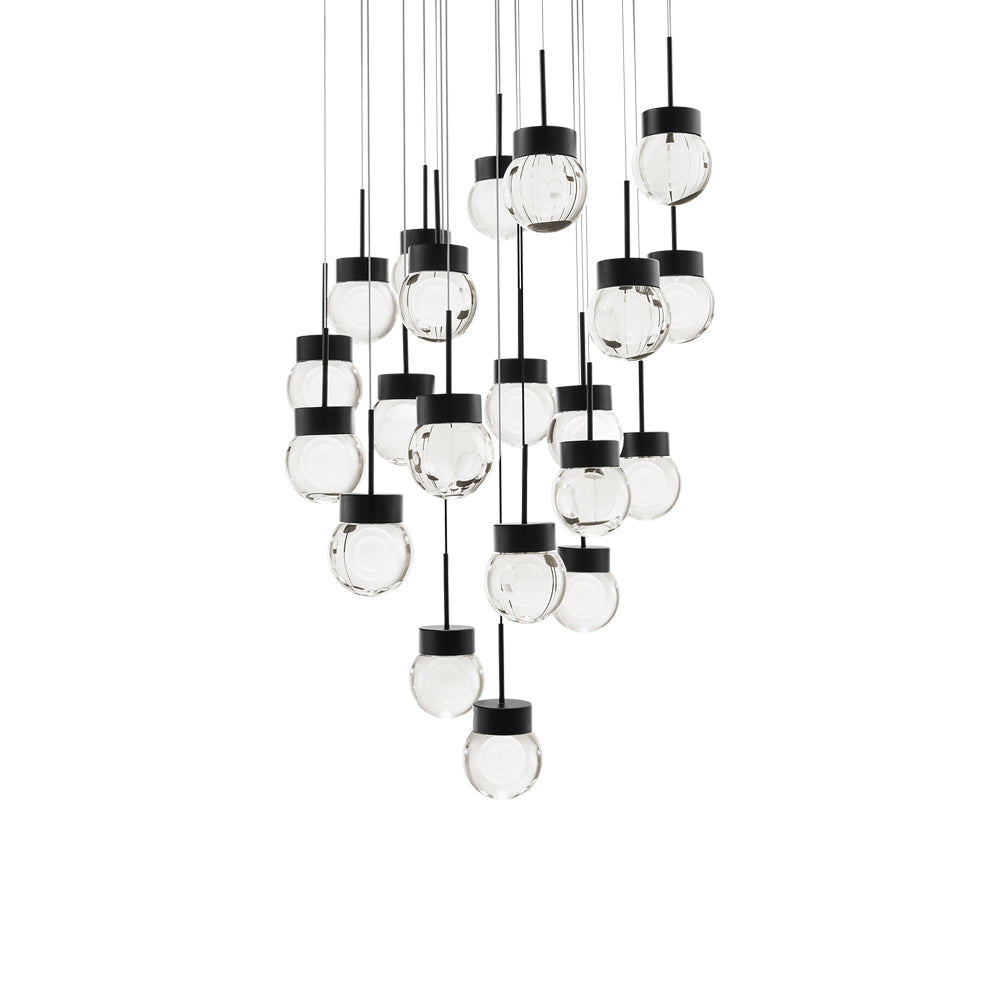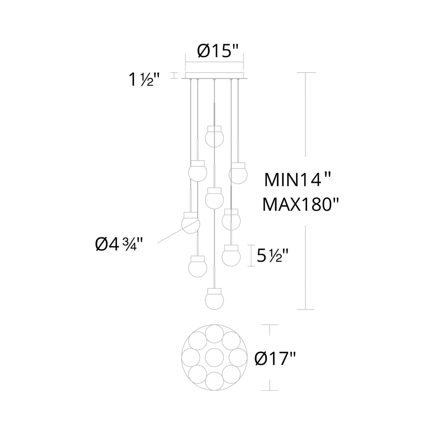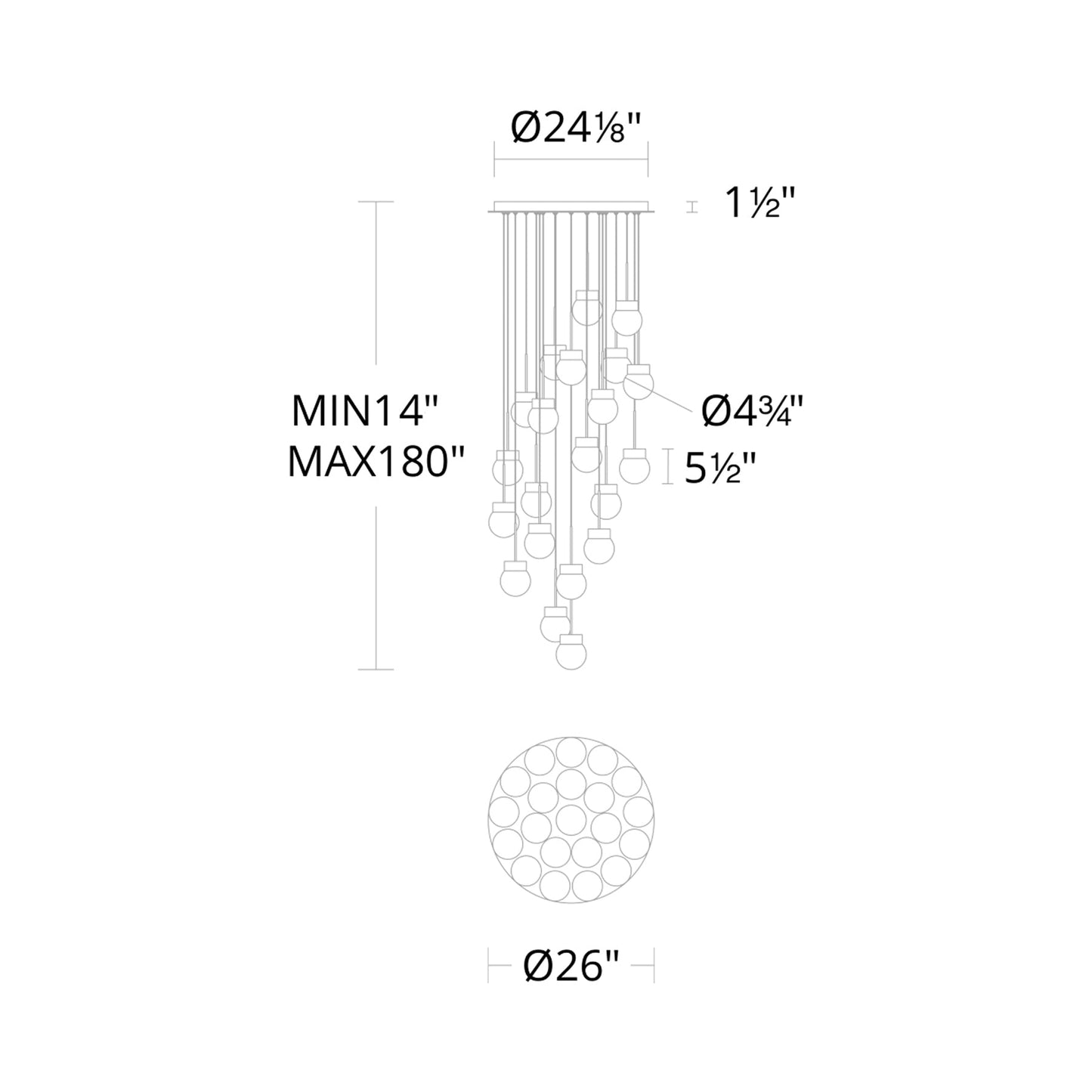 A collection of petite orbs are laser etched to create depth and dimensionality for the Double Bubble Round LED Multi Pendant Light from Modern Forms. Energy efficient LEDs are tucked within metal rings above each orb, casting glittering illumination over your living or dining space. Orbs are suspended at varying heights to create a whimsical presentation that offers both playful energy and impeccable elegance.