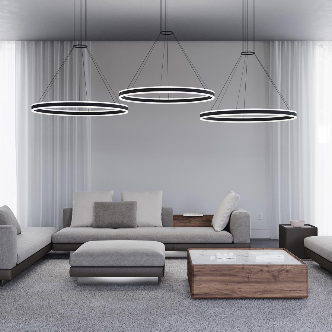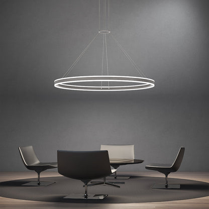 An endless circle defines the durable design power of the Double Corona™ Ring LED Pendant Light from Sonneman Lighting, a chic, dimmable fixture featuring a round aluminum frame and frosted acrylic differs at each end, suspended in a geometric fashion to suggest an ultra-modern motif.