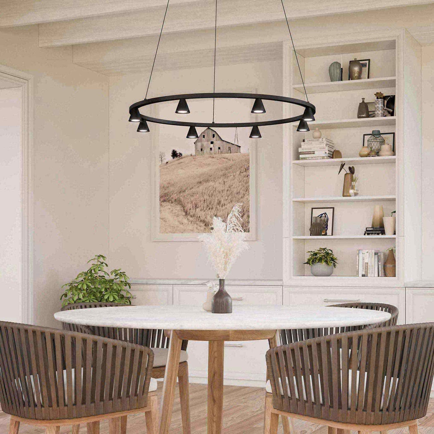 - Brushed Nickel: 8 X 41 total watts 120V-277V integrated LED modules; 3700 lumens, 90 CRI, 3000K (included)