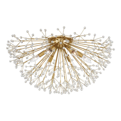 Glittering crystal beads explode from the center point from the Dunkirk Flush Mount Ceiling Light from Hudson Valley Lighting to create an organic effect in any room.
