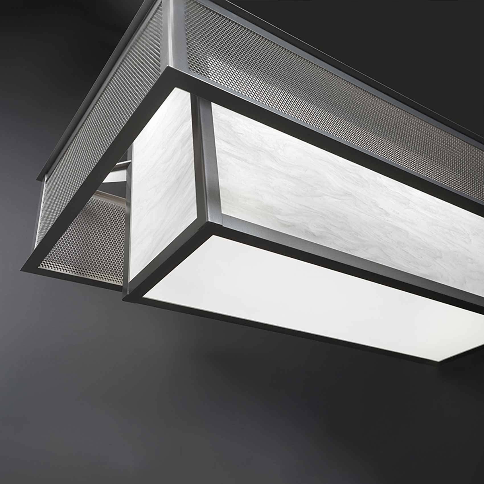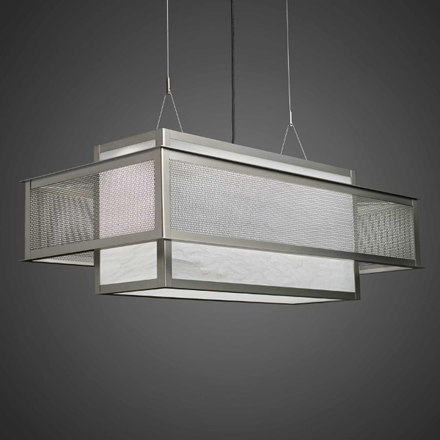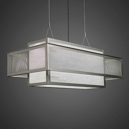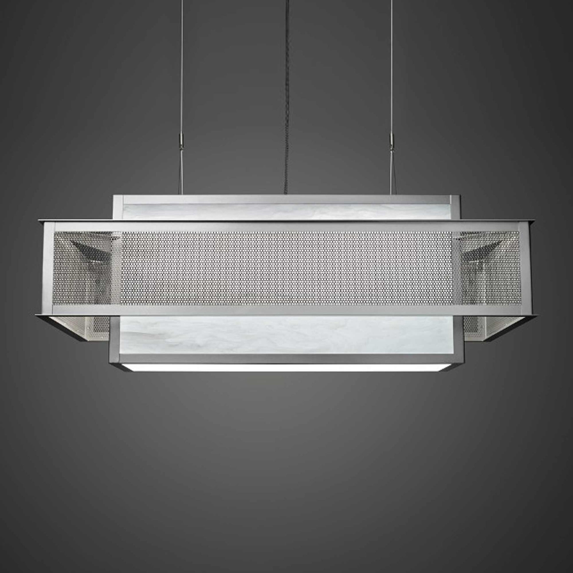 Gritty industrial inspiration adds classic themed energy to a modern space when the Duo LED Linear Pendant Light from UltraLights captures attention in a living or dining space. Artistry adopts a mechanical approach with a layered configuration of a screen over a diffuser, all presented in framed silhouetting of rectangles suspending from slender cables.