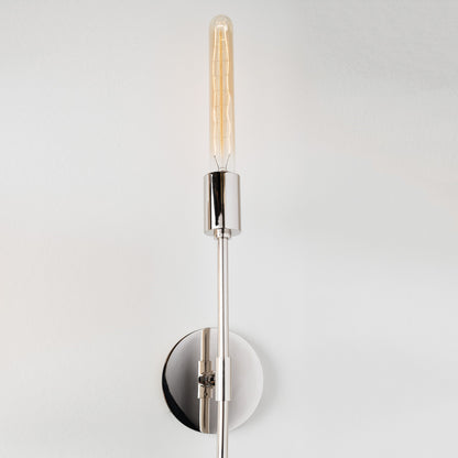 Slender and sophisticated, the Dylan Wall Light from Mitzi features an extended rod shape and a bulb that resembles a tapered candlestick, lending a timeless look. With a lustrous finish and minimalist design aesthetic, this chic wall light is perfectly suited along a vanity wall, transforming bathrooms into spa-like retreats.