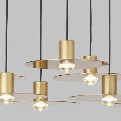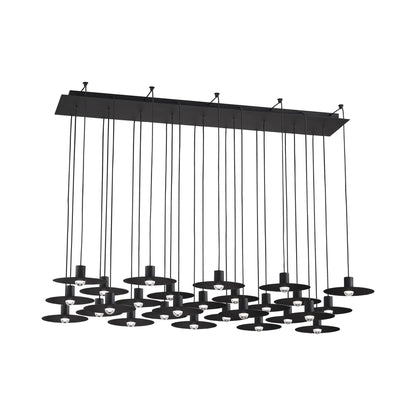 Representing the best of modern minimalism, the Eaves LED Chandelier from Visual Comfort Modern introduces exceptional style and artistry to a residential or commercial space. A rectangular canopy hosts a bevy of suspended lights, each with a metal disc shade and a domed optic that create intriguing geometrics. Elegant but approachable, the chandelier is dimmable with most dimmers to ensure the perfect ambiance.