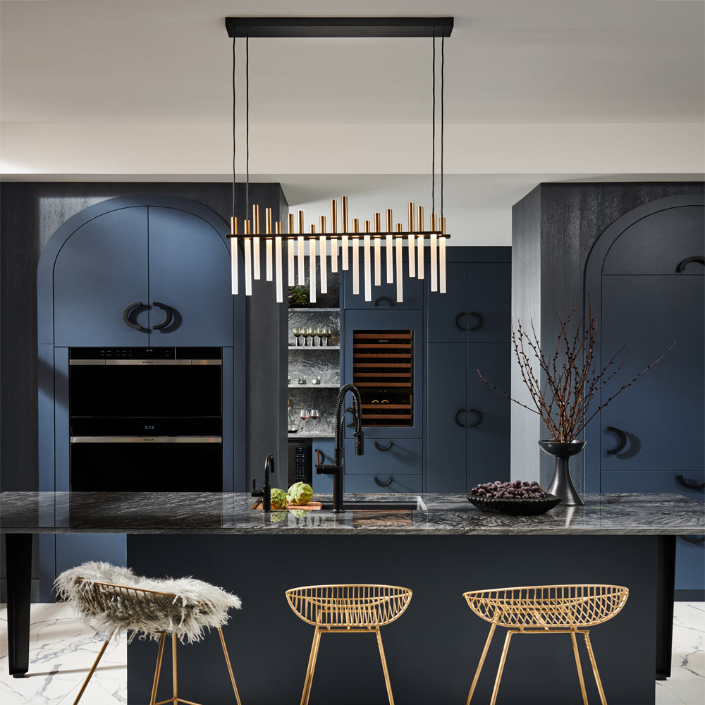 Varied rods create a rich, almost musical presentation for the Echo LED Linear Pendant Light from Fredrick Ramond.