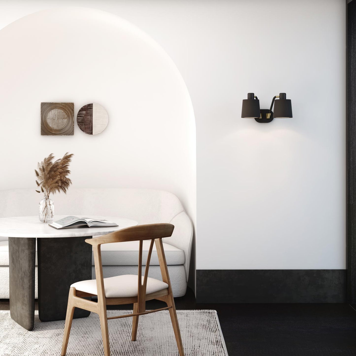 The Edward Twin Wall Light from Astro Lighting offers double the energy-saving illumination with a dual module design and conventional metal construction. Adding studio inspiration, this fixture modernizes an industrial motif, adding updated elements including flexible curved arms and a sleek, shapely wall plate.