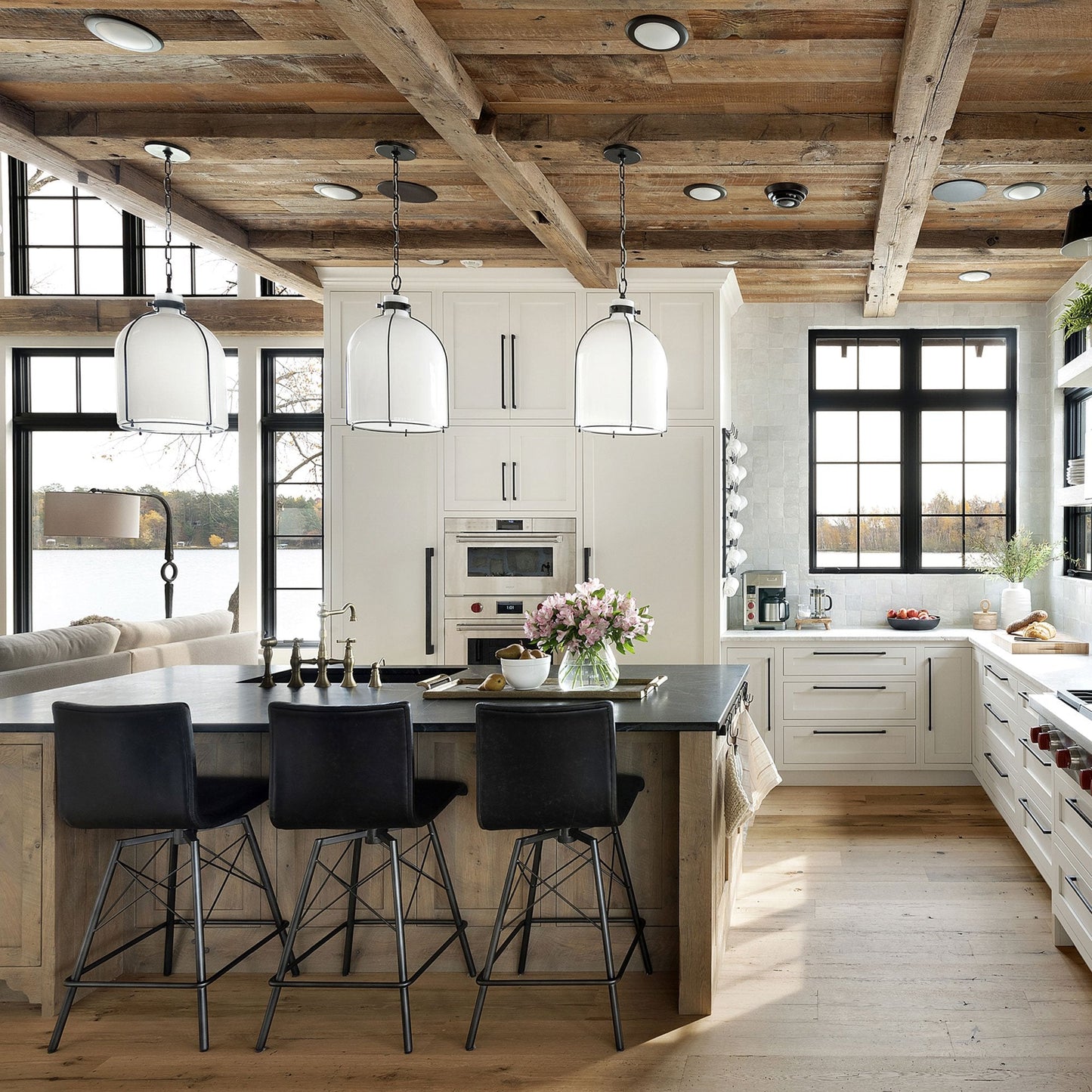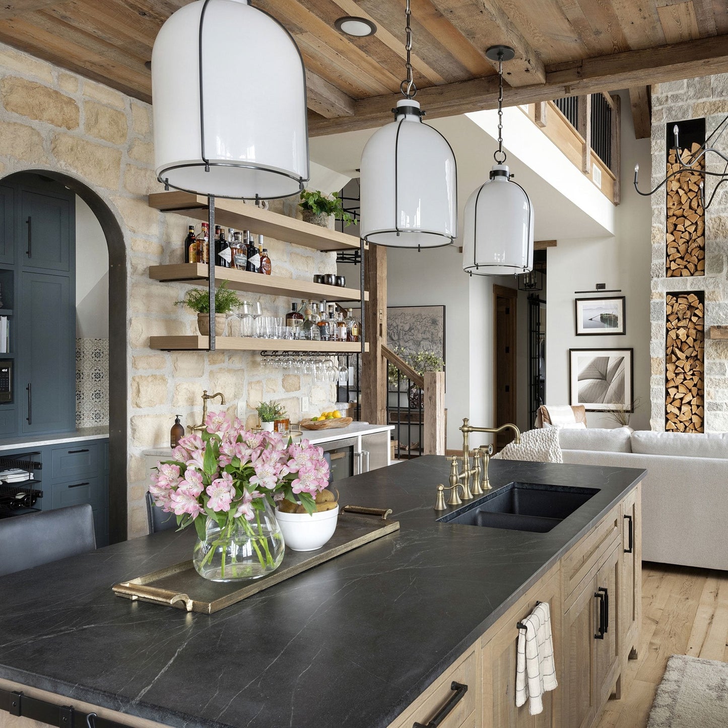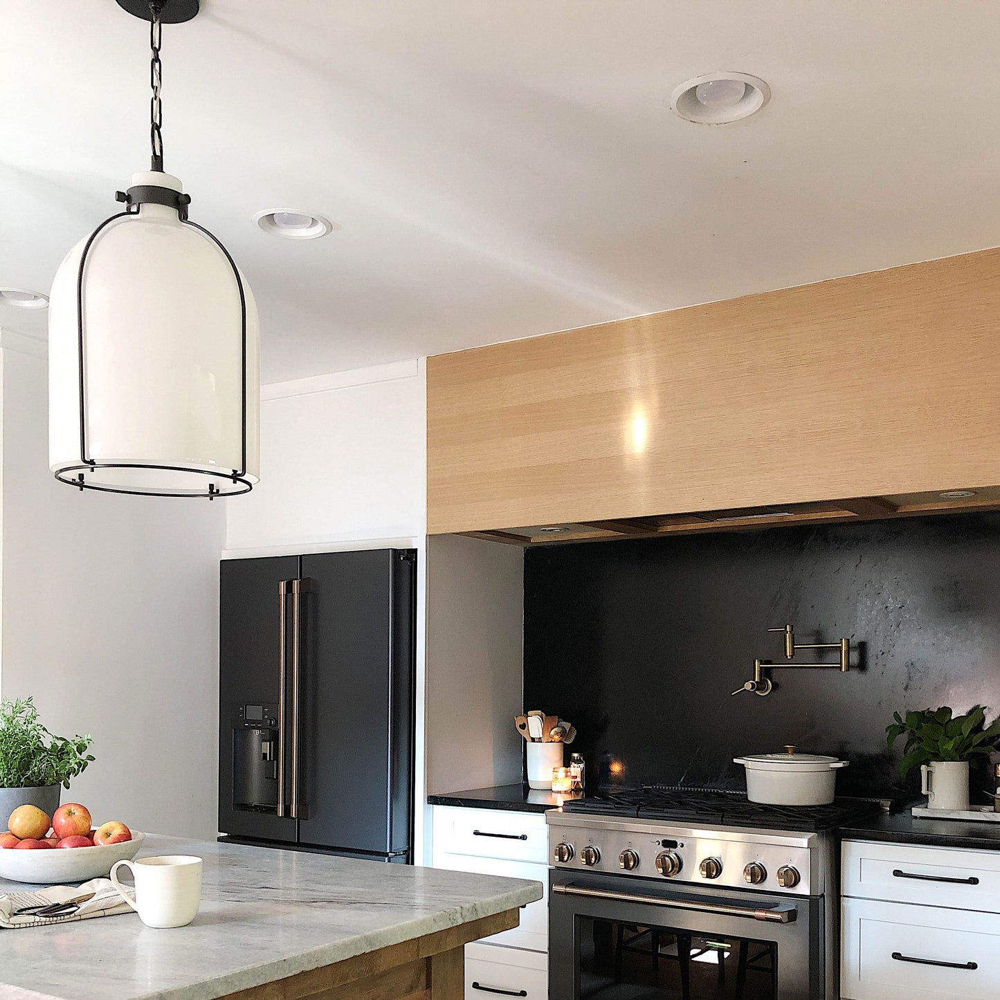 The Eldridge B Pendant Light from Hudson Valley Lighting commands attention with its sleek, cage-like frame and delicate glass shade.