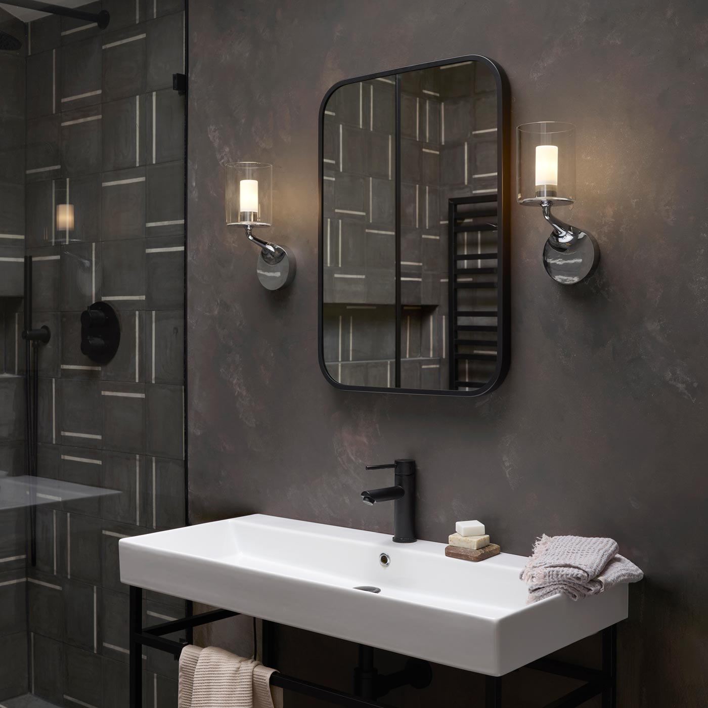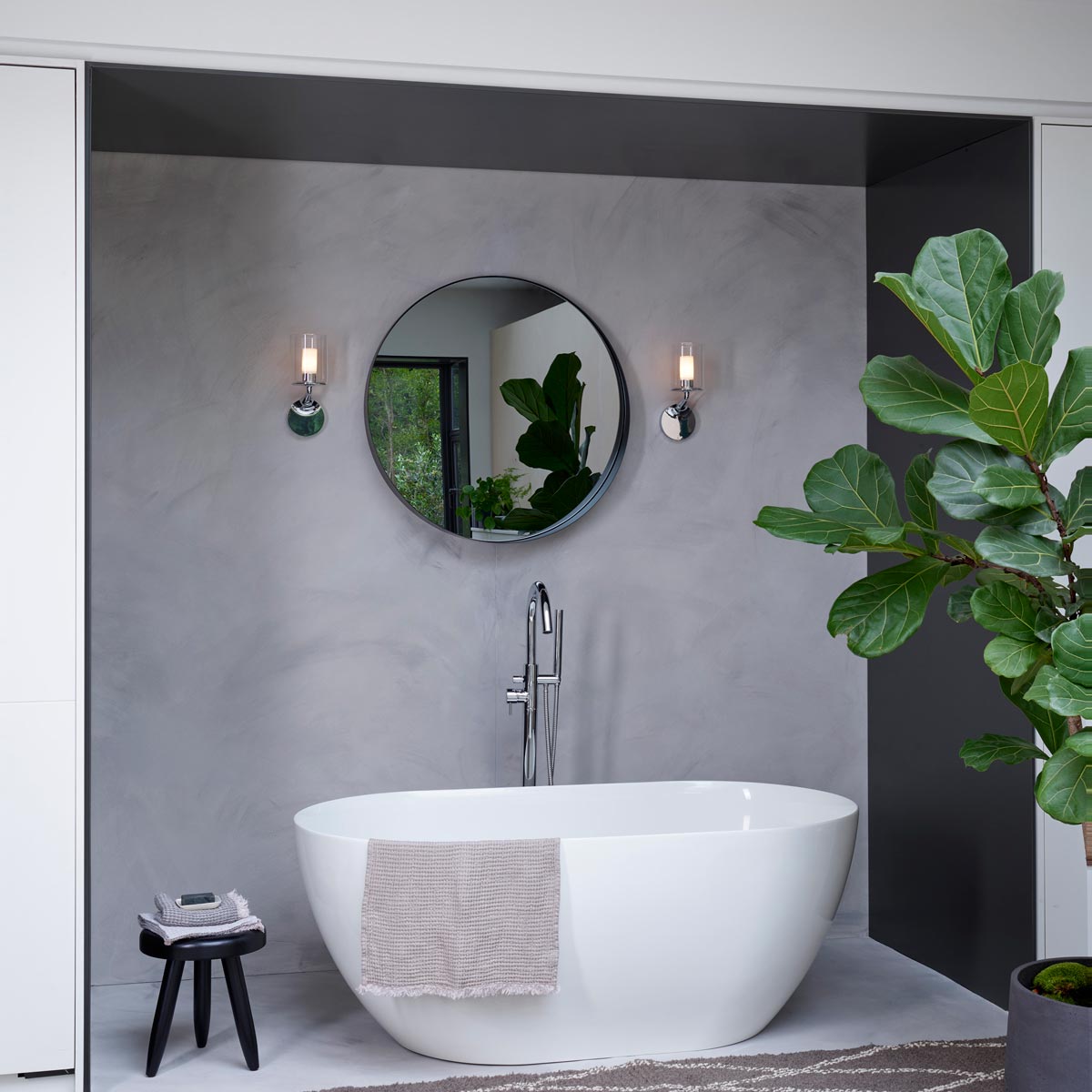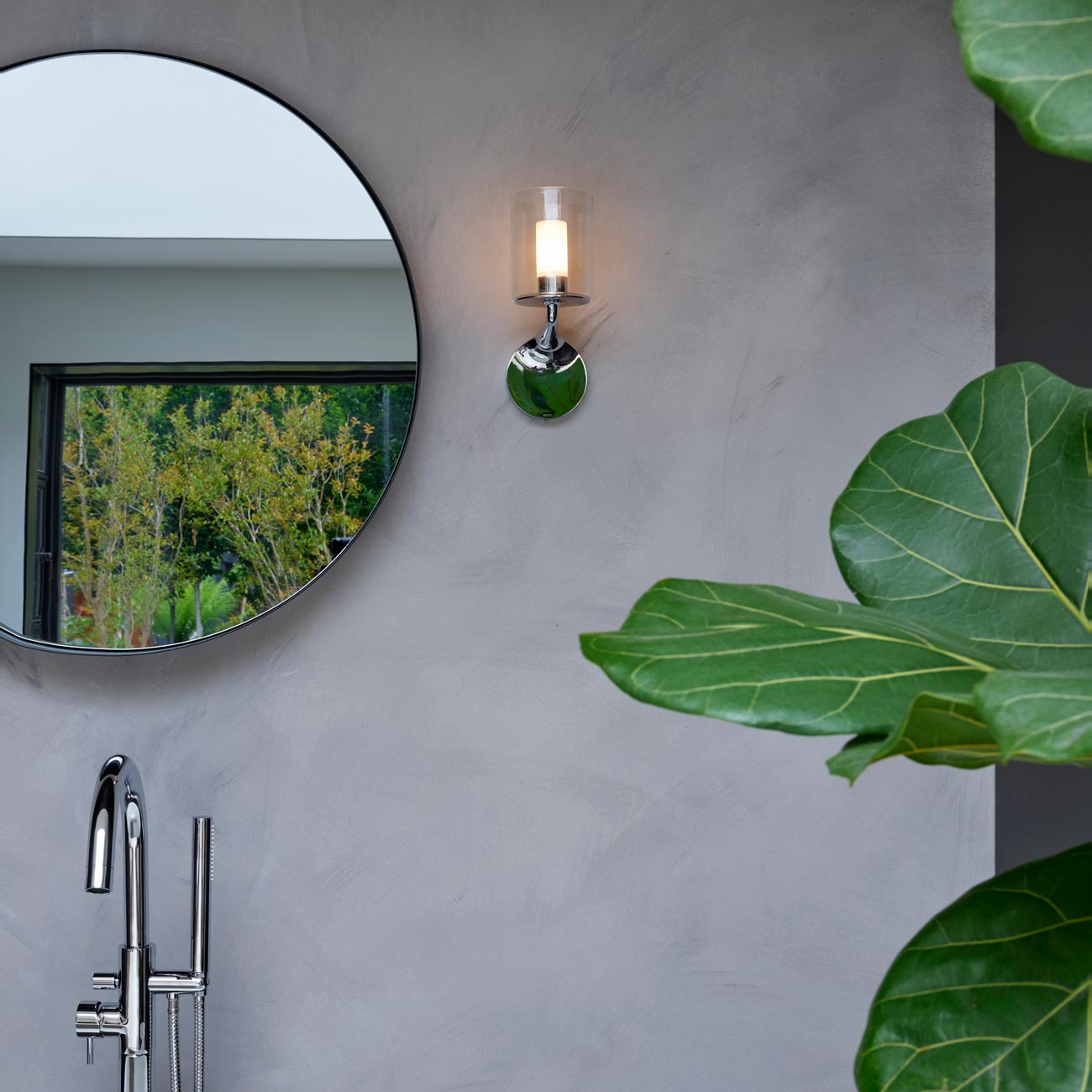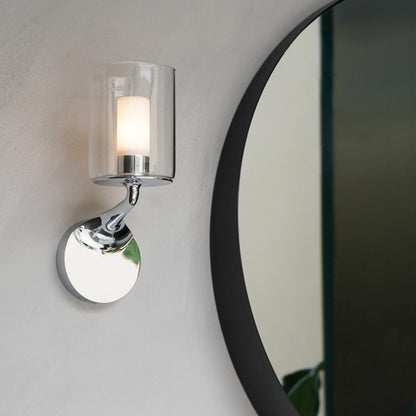 Romance and drama intertwine to create theatrical effects in a livable space in search of ambient and accent lighting. The Elena Wall Light from Astro Lighting repurposes a vintage candelabra motif with an intriguing arm shape and disc-like base. An opal glass diffuser adopts cylinder silhouetting, as a cylinder glass shade offers radiant glam.