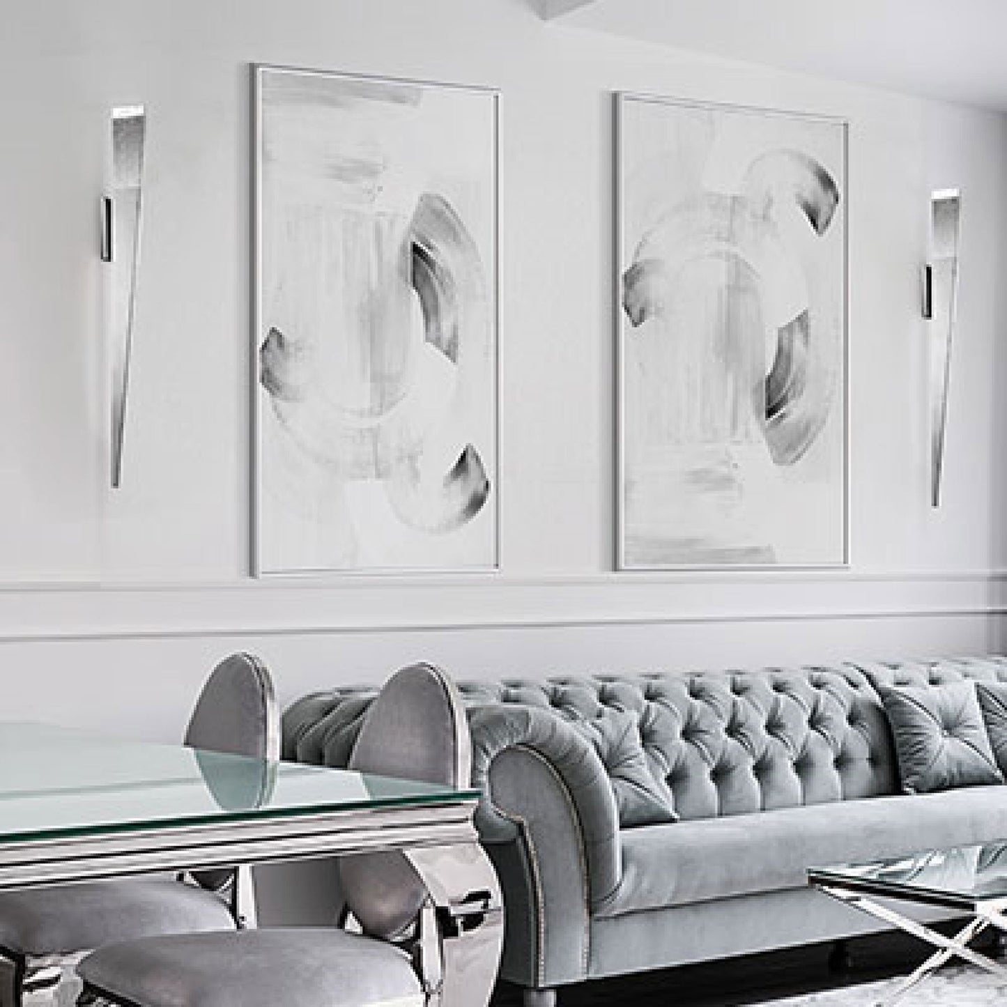 A triumphant staff of silver and light, Elessar makes a dramatic statement wherever you mount it. Seeded crystal sparkles with light and casts a captivating spell, while LEDs positioned in the back of the polished stainless steel body create fine indirect light against the wall for a fuller illumination. Energy-efficient and long-lasting, thanks to cutting-edge LEDs and a timeless design, Elessar is a distinctive sconce for modern hotels, luxury condos and midtown office buildings.