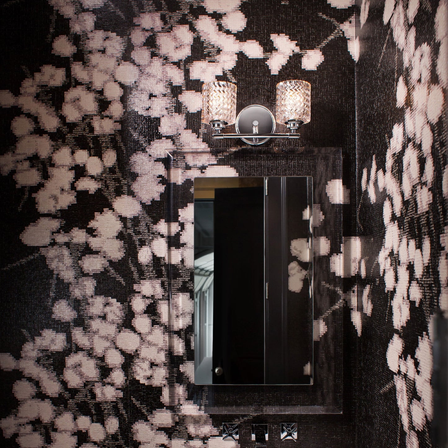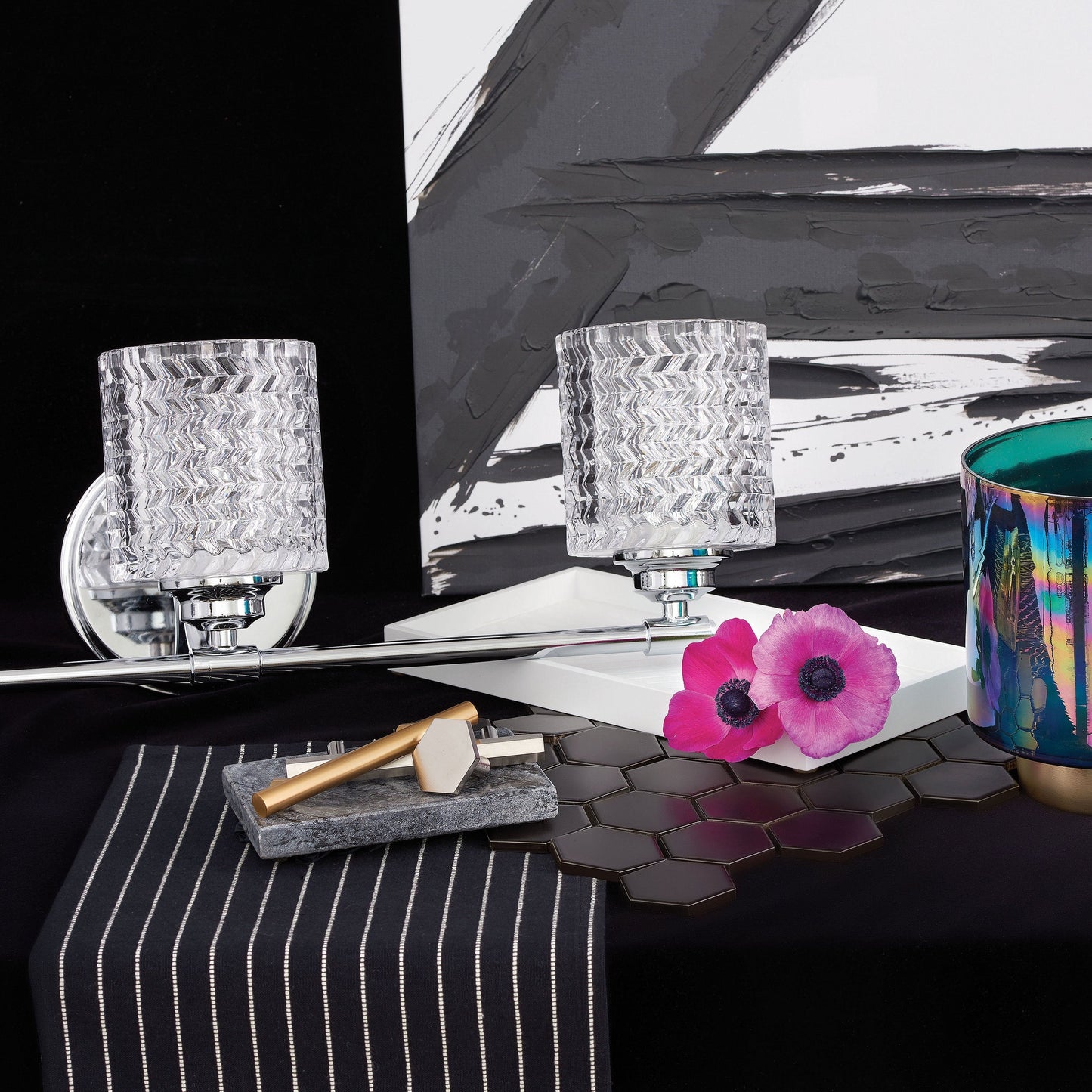 Traditional elegance with a modern edge defines Elle graceful design. A rich; chevron cut; clear glass is the dramatic focal point; complemented by a gleaming Chrome finish. The softly rounded steel back plate is finished with luxe stepped detailing to complete the design.