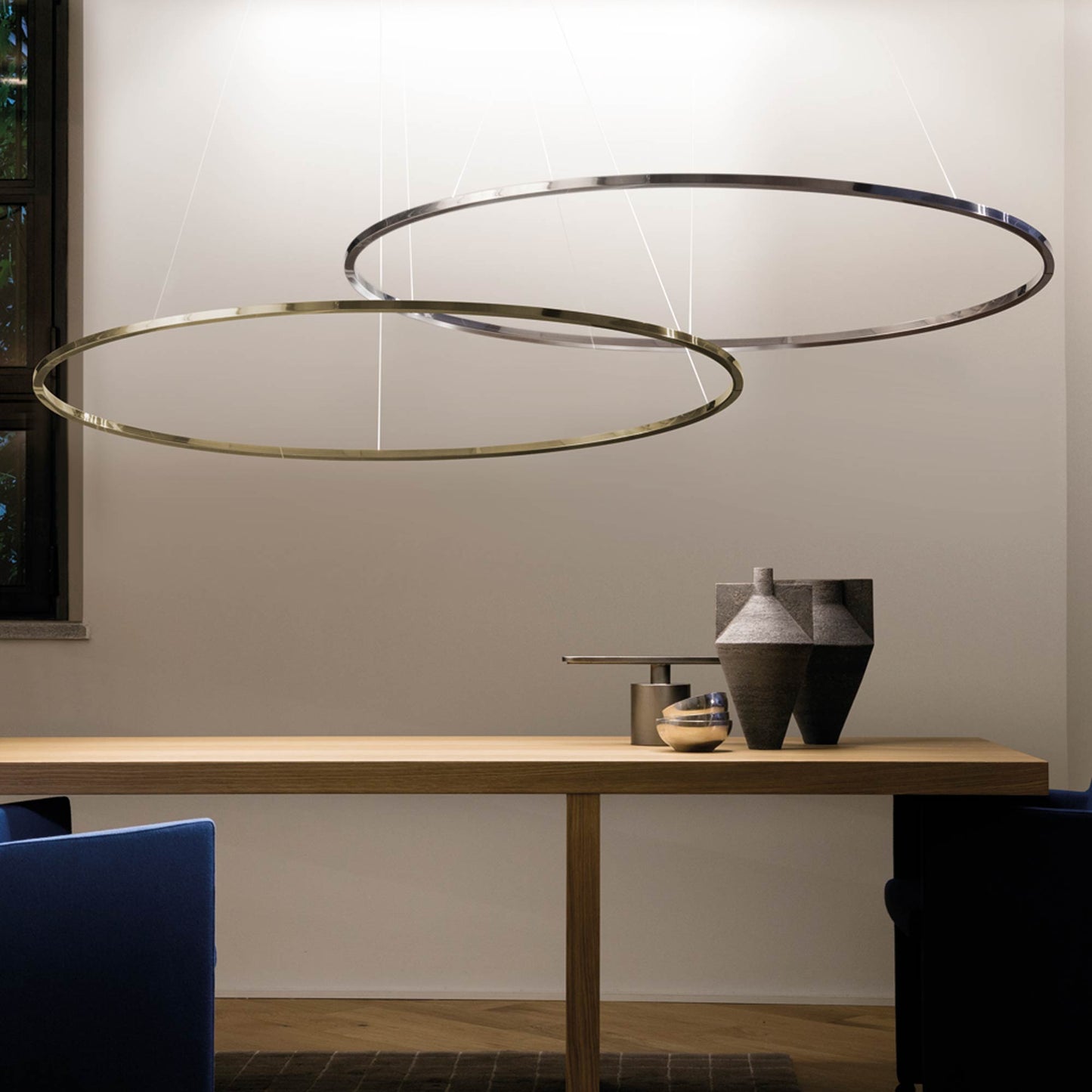 A delicate celestial motif emerges in the Ellisse LED Major Pendant Light from NEMO, adding a sense of invisibility with subtle shaping and a fabulous way to light up a modern space. Floating as a halo-inspired element, its aluminum ring frame and continuous opal diffuser express the fine art and architectural worlds colliding in a single modern fixture.