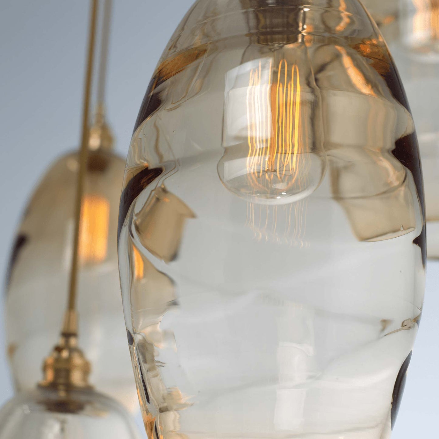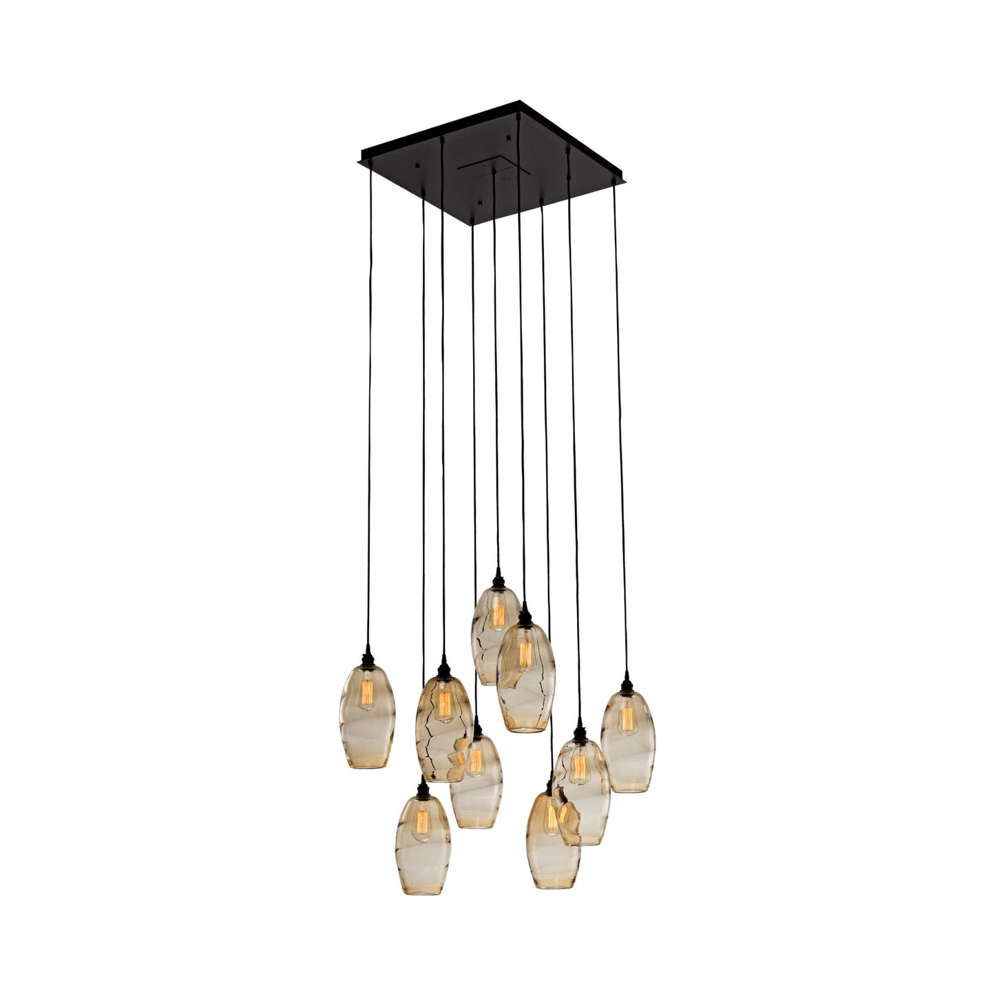 A square canopy brings crisp style to the beautiful curves of the Ellisse Multi Light Pendant Light from Hammerton Studio. Optic blown glass shades swirl with sparkling energy, offering glowing ambiance over a foyer or dining table.