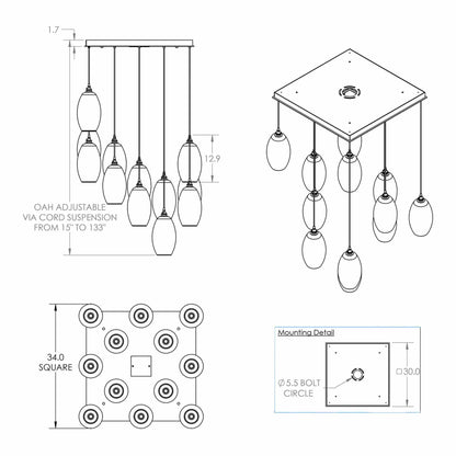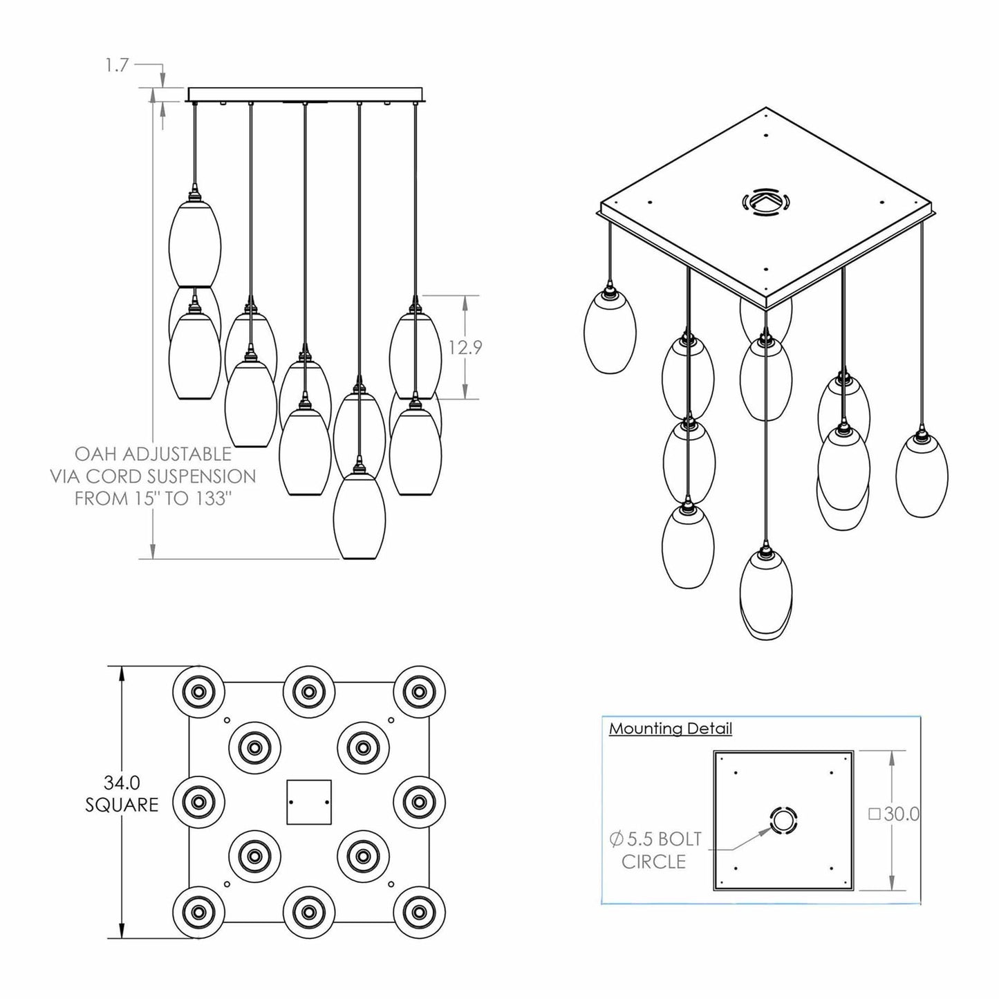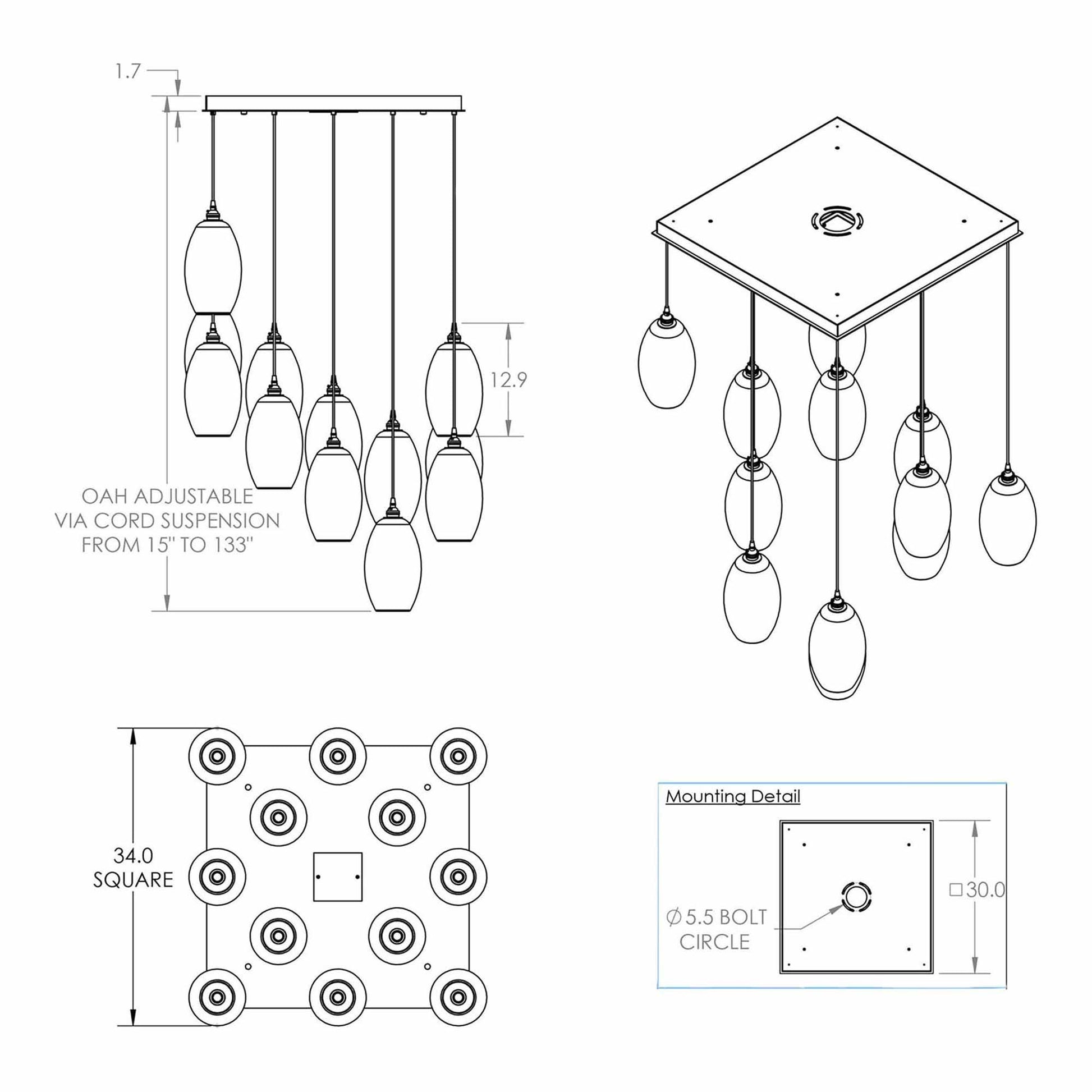 - 12-Light: 12 X 40W 120V E26(medium base) A19 incandescent lamps (not included)