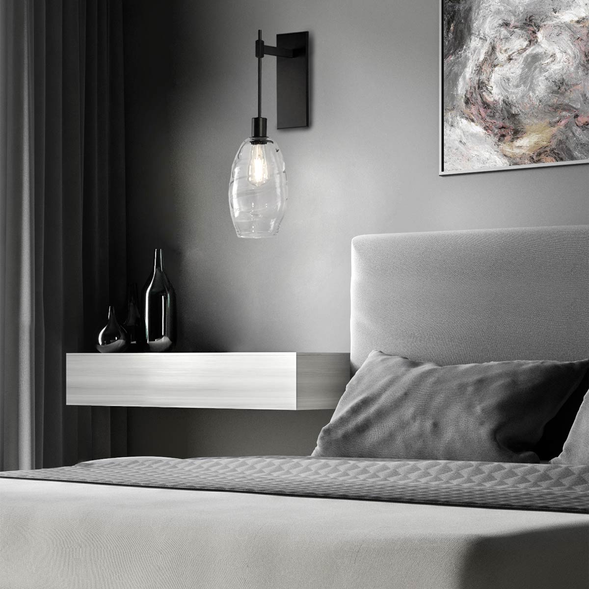 Right angles juxtapose soft curvature in the compelling Ellisse Tempo Wall Light from Hammerton Studio. Optic blown glass with a subtle swirl creates beautiful illumination in a hall or living room.