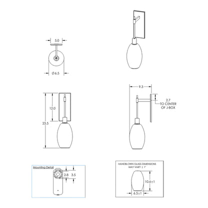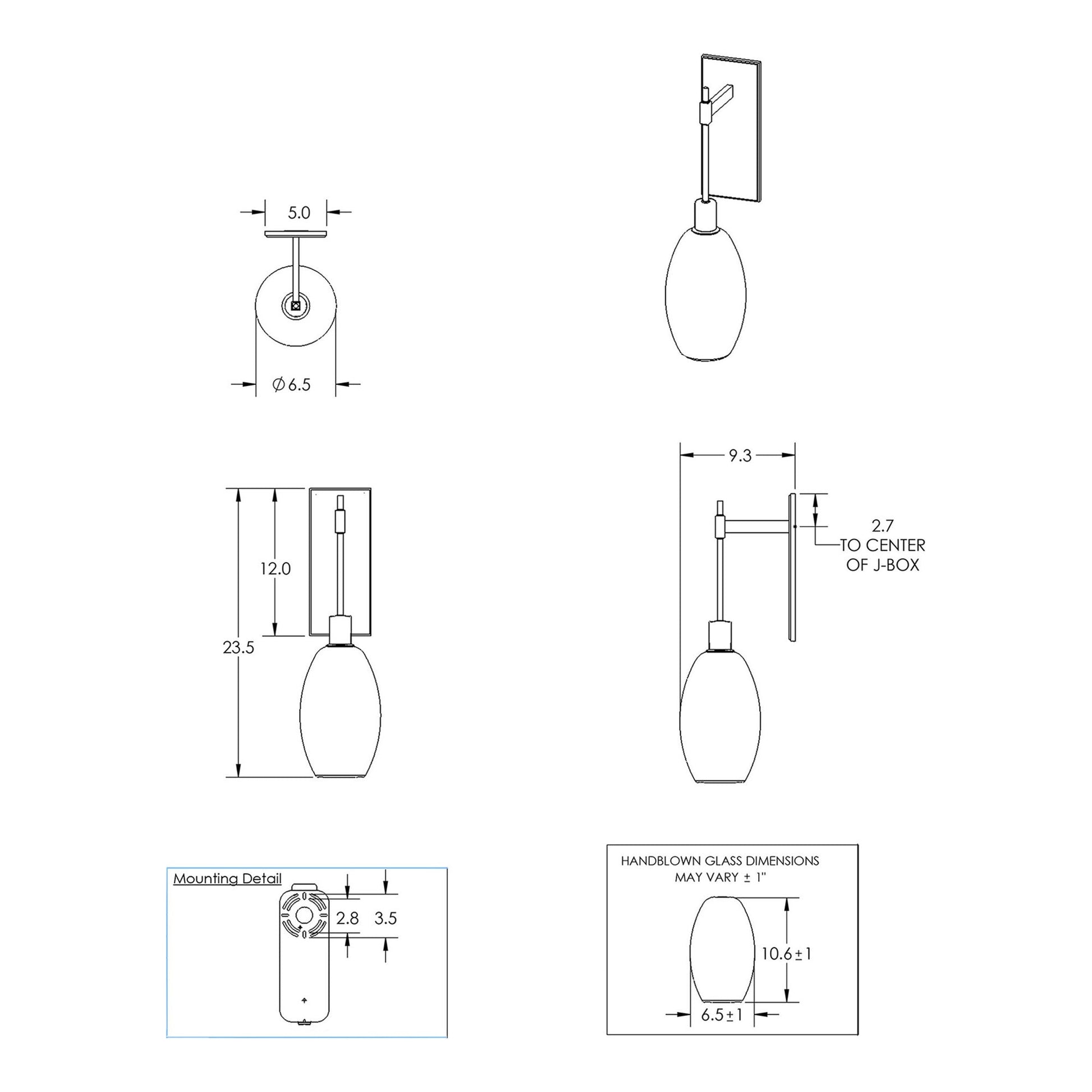- Dimensions: 6.5"W X 23.5"H; 9.3" Extension