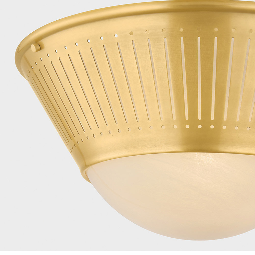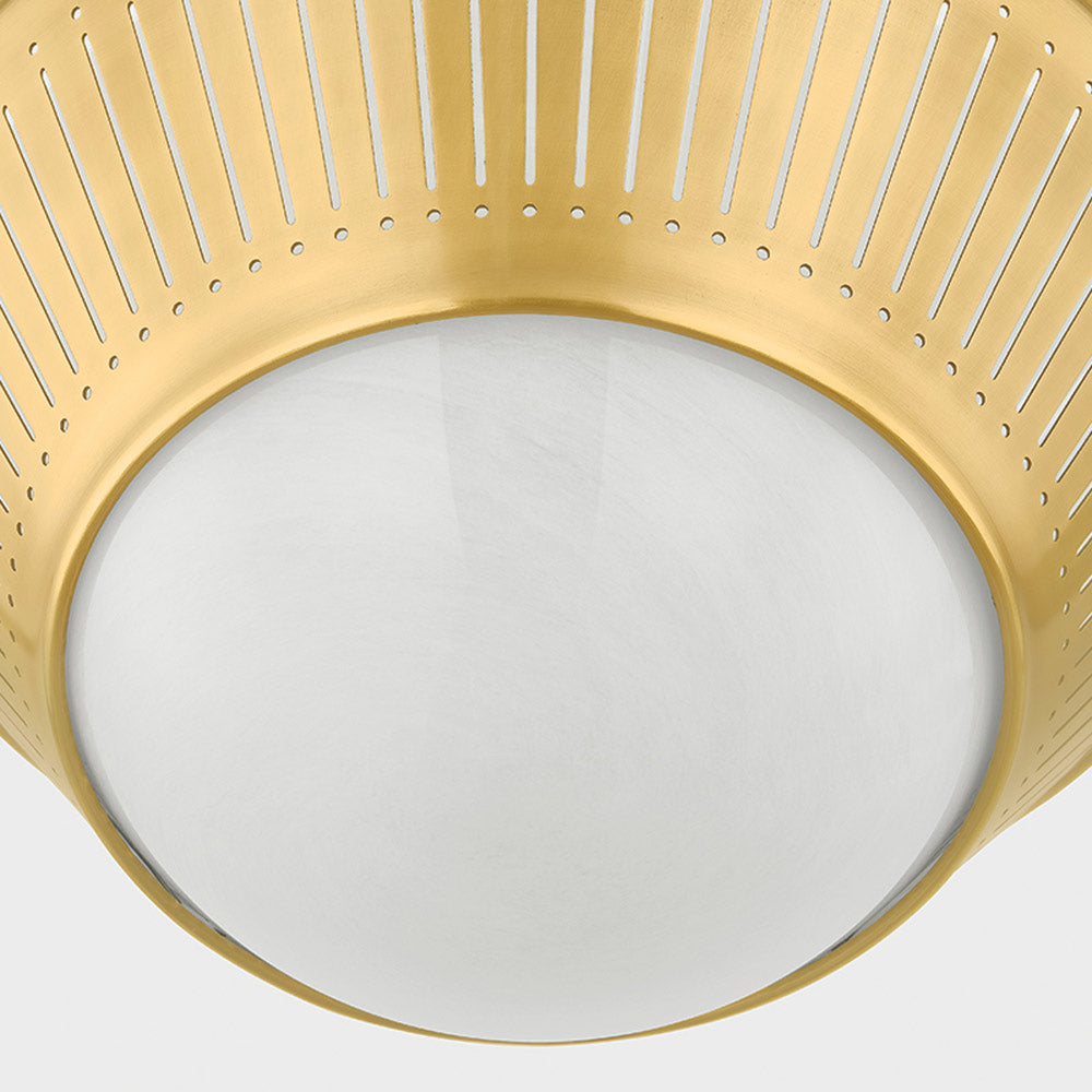 Elegant as a sunrise over a cityscape, the Elsmere Flush Mount Ceiling Light from Hudson Valley Lighting captures the drama of Deco-era design. The cloud glass glows warmly beneath a perforated metal rim, creating a celestial play of light that transforms the ceiling into a radiant canvas.
