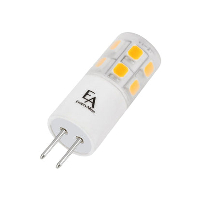 The Emeryallen G4 Bi Pin Base 12V Mini LED Bulb from EmeryAllen is a retrofit lamp offering an alternative to 12v incandescent G4 base lamps. Light output is roughly comparable in a lamp suited to use in most 12v fixtures, with a long-lasting lifespan and compatibility with bath lights, ceiling lights, and outdoor lighting.