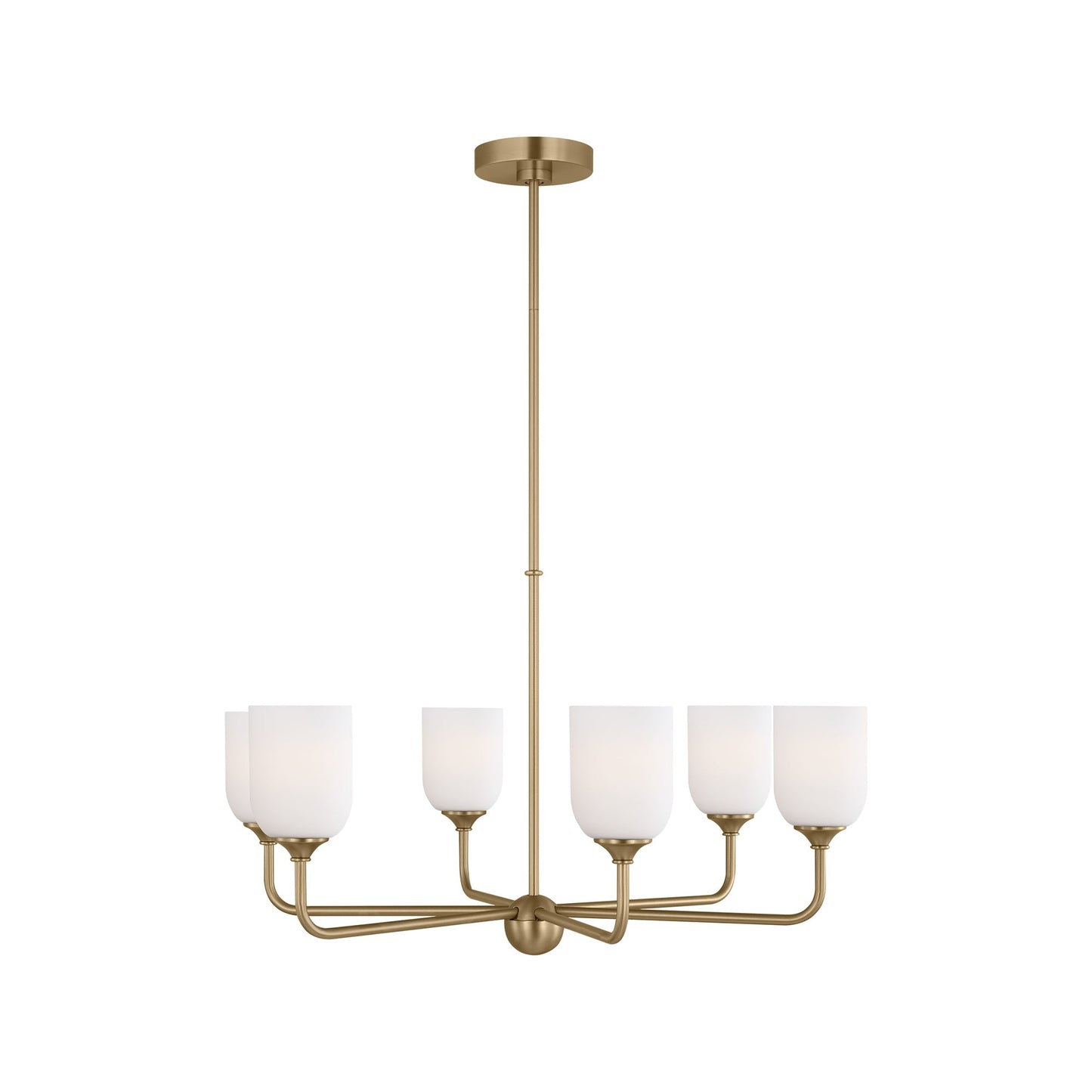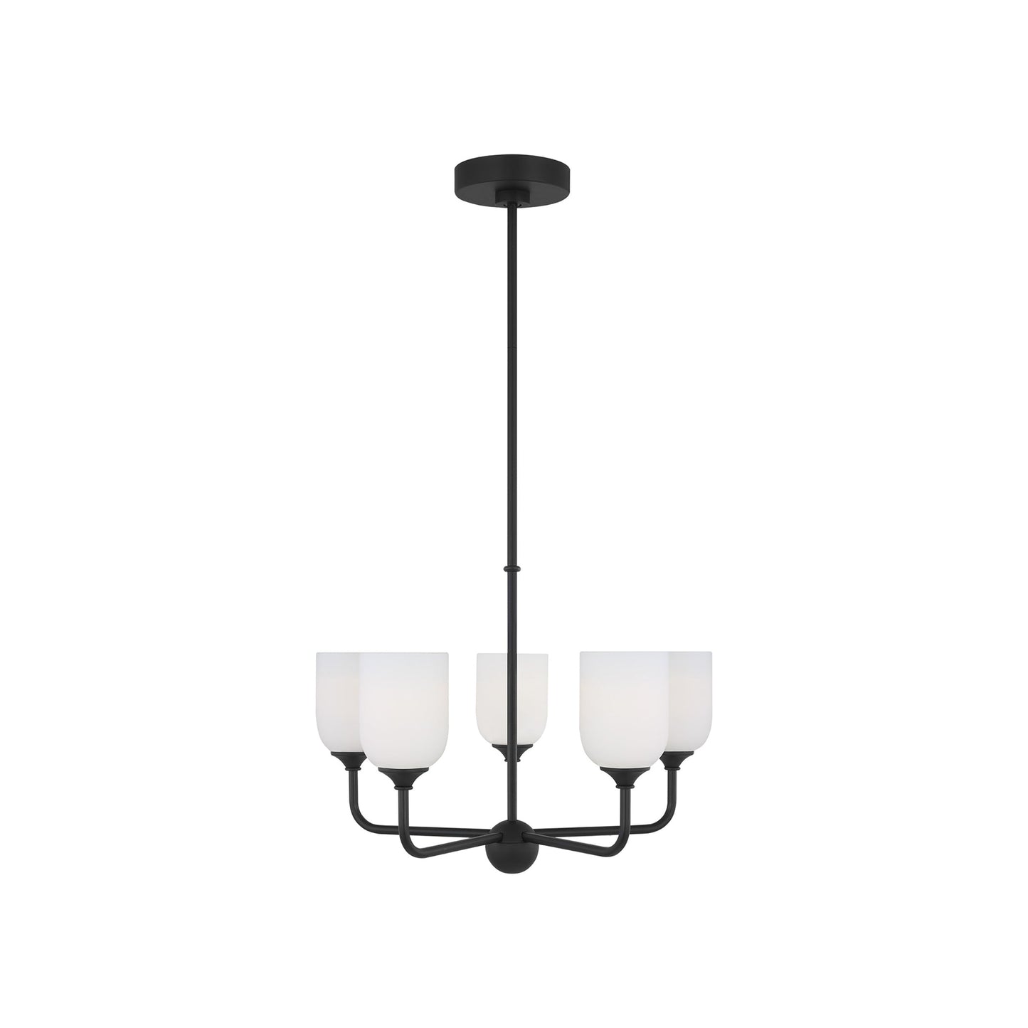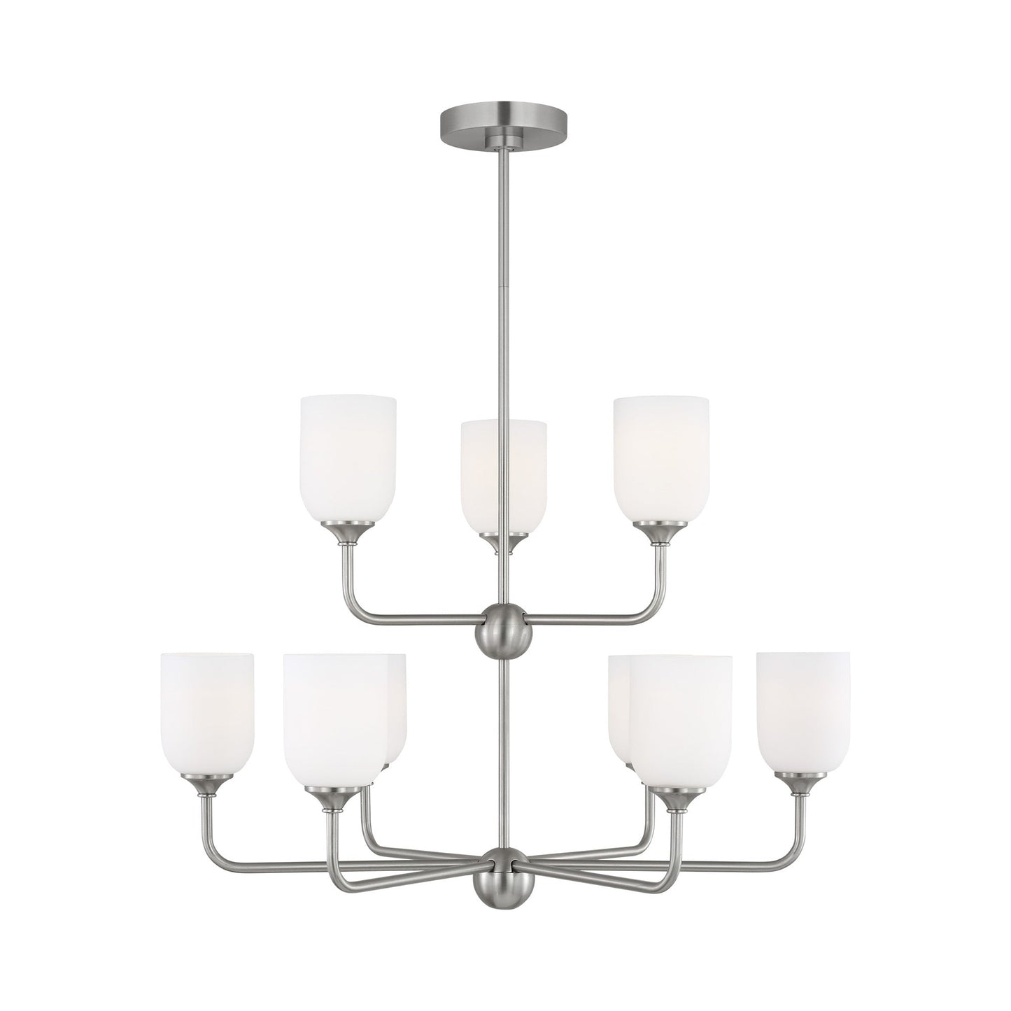The Emile Chandelier from Generation Lighting delivers a provocative look of sophistication with modern styling. Milky white goblet shades and metal framing mix masterfully, with a bit of industrial-inspired elements emulating linear piping. This epic fixture is a must-have for dining rooms and foyers.