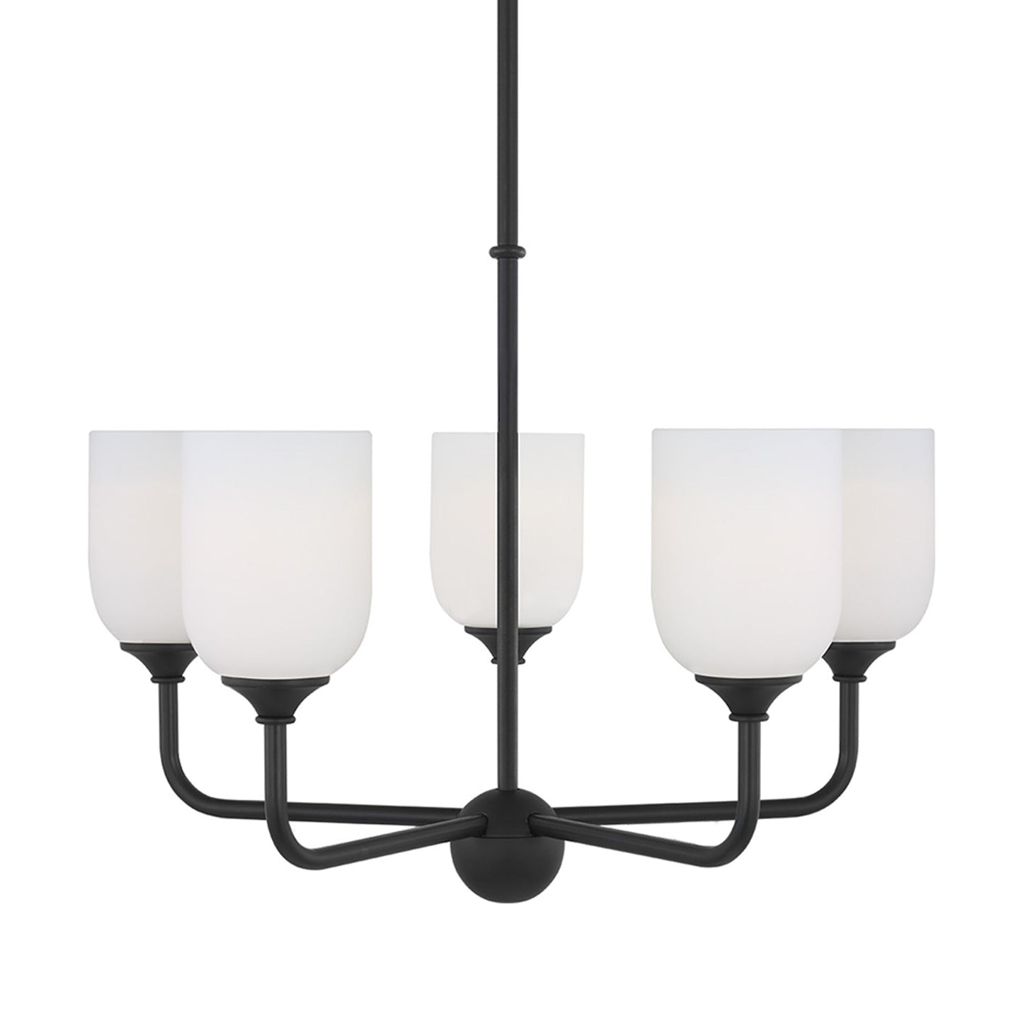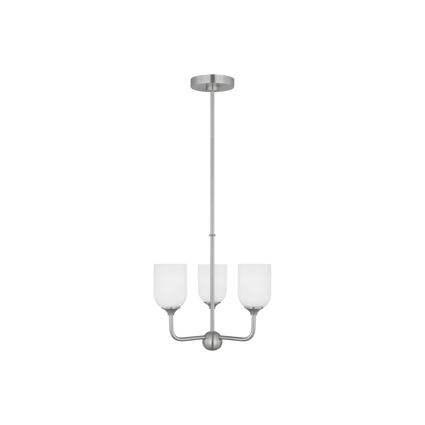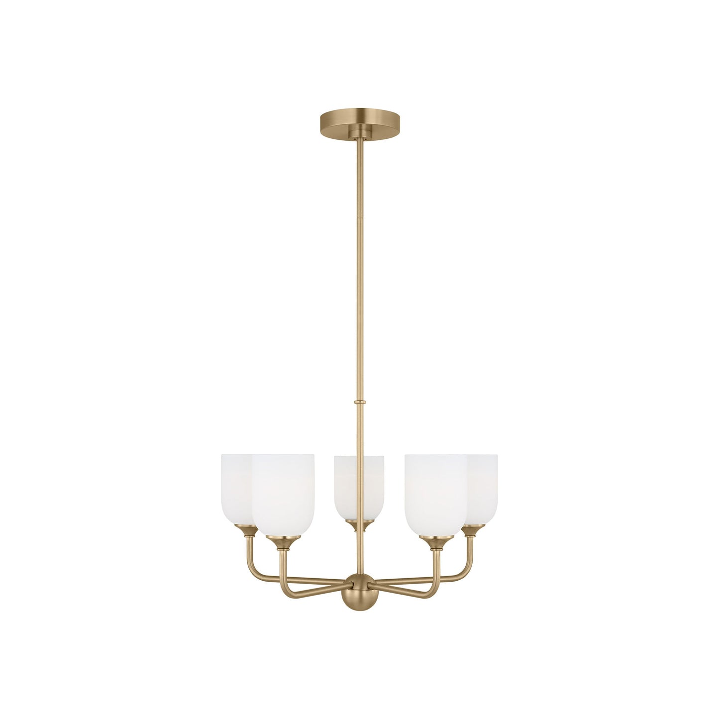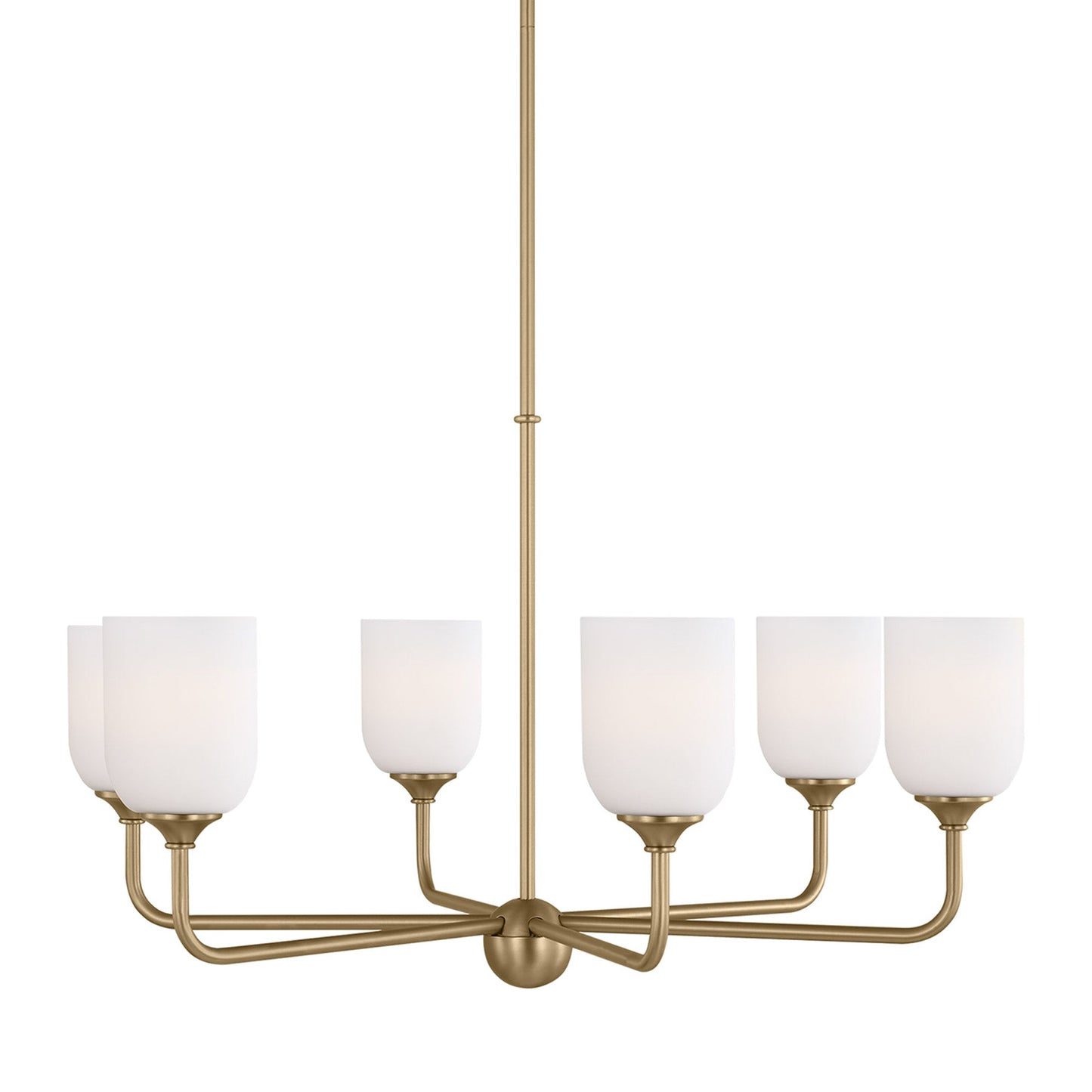The Emile Chandelier from Generation Lighting delivers a provocative look of sophistication with modern styling. Milky white goblet shades and metal framing mix masterfully, with a bit of industrial-inspired elements emulating linear piping. This epic fixture is a must-have for dining rooms and foyers.