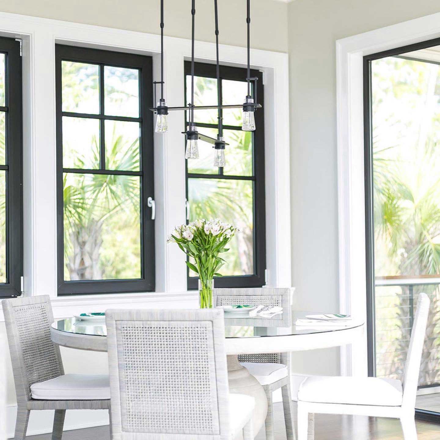 Evoking an industrial modern aesthetic to perfection, the Erlenmeyer Multi-Light Pendant Light from Hubbardton Forge pairs exceptional glass shades with intricate metal framing.