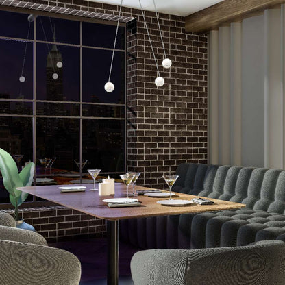 A minimalist aesthetic turns out to be fashion-forward and exotic as the Europa LED Pendant Light from Kuzco Lighting brings energy-efficient illumination to a casual space. A simple design attaches a slender metal tube to an etched opal glass globe, taking care to maximize the impact of light delivery. Mount this pendant solo or in a cluster to customize any setting.