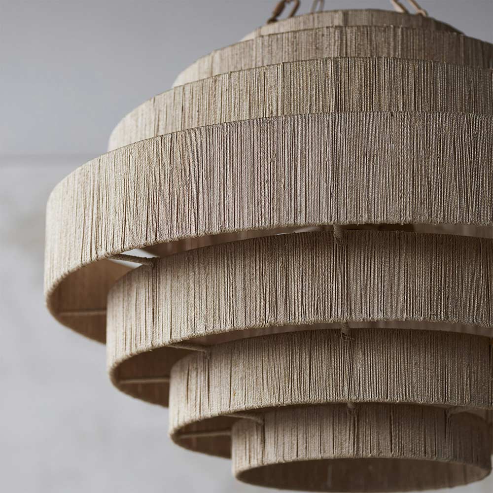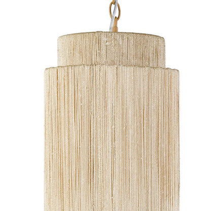 Distinctive cylinders of fine abaca rope create a layered effect for the contemporary Everly Pendant Light from Palecek. Its rugged texture and natural coloration complement a power coated metal frame that creates dynamic structure over a breakfast nook or in an entryway.