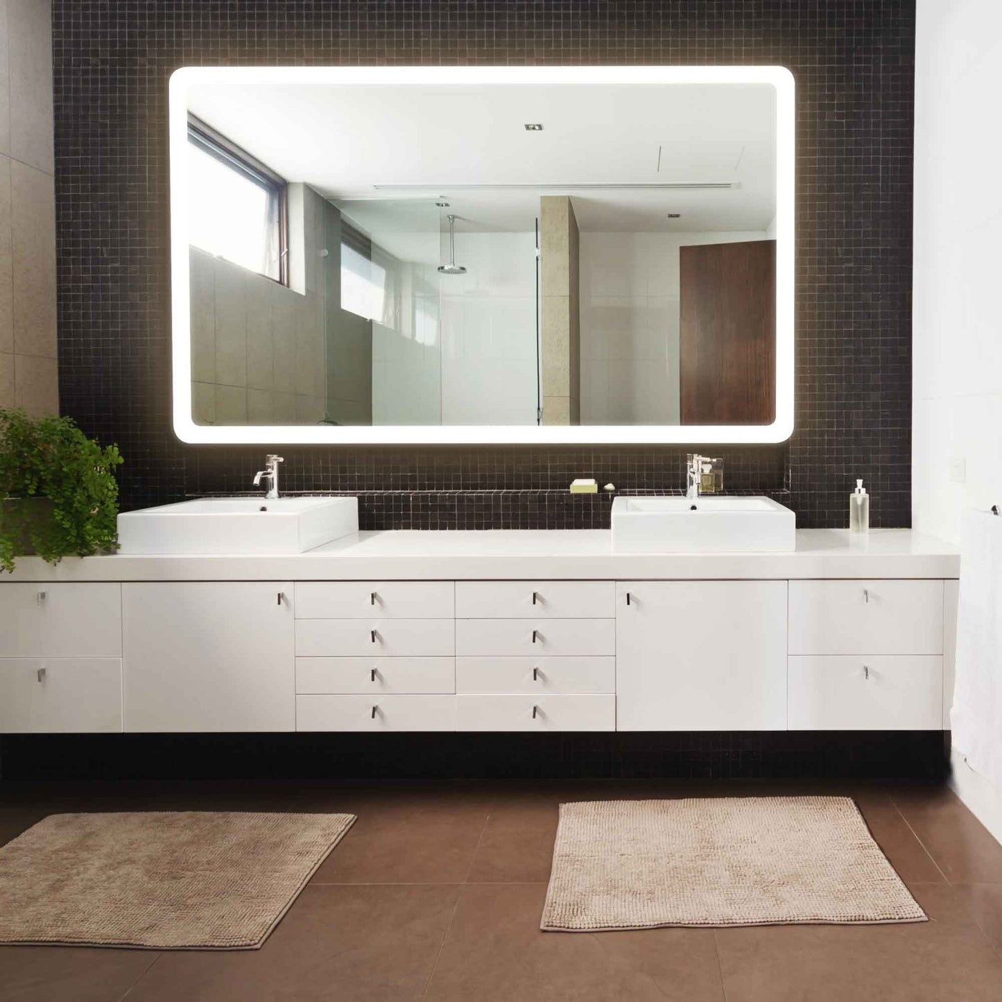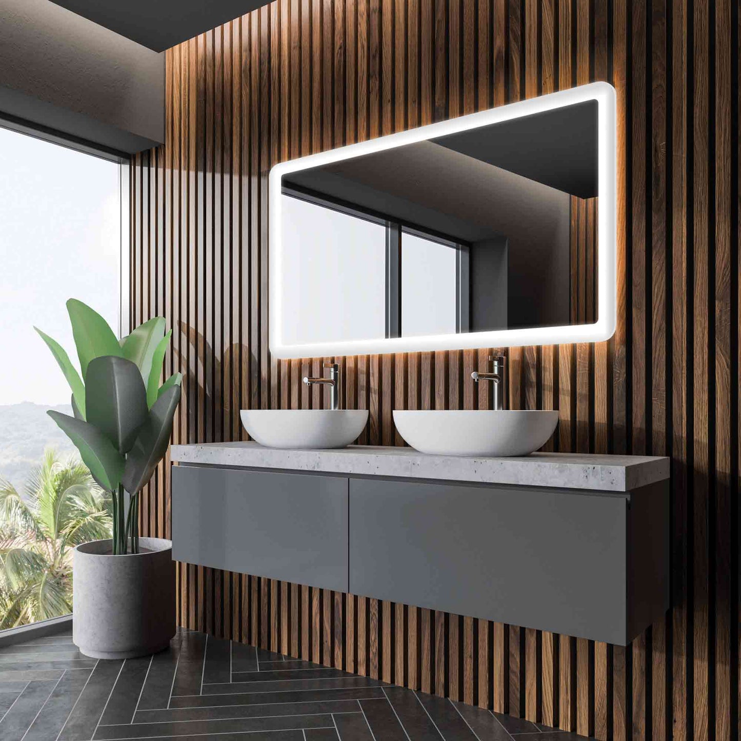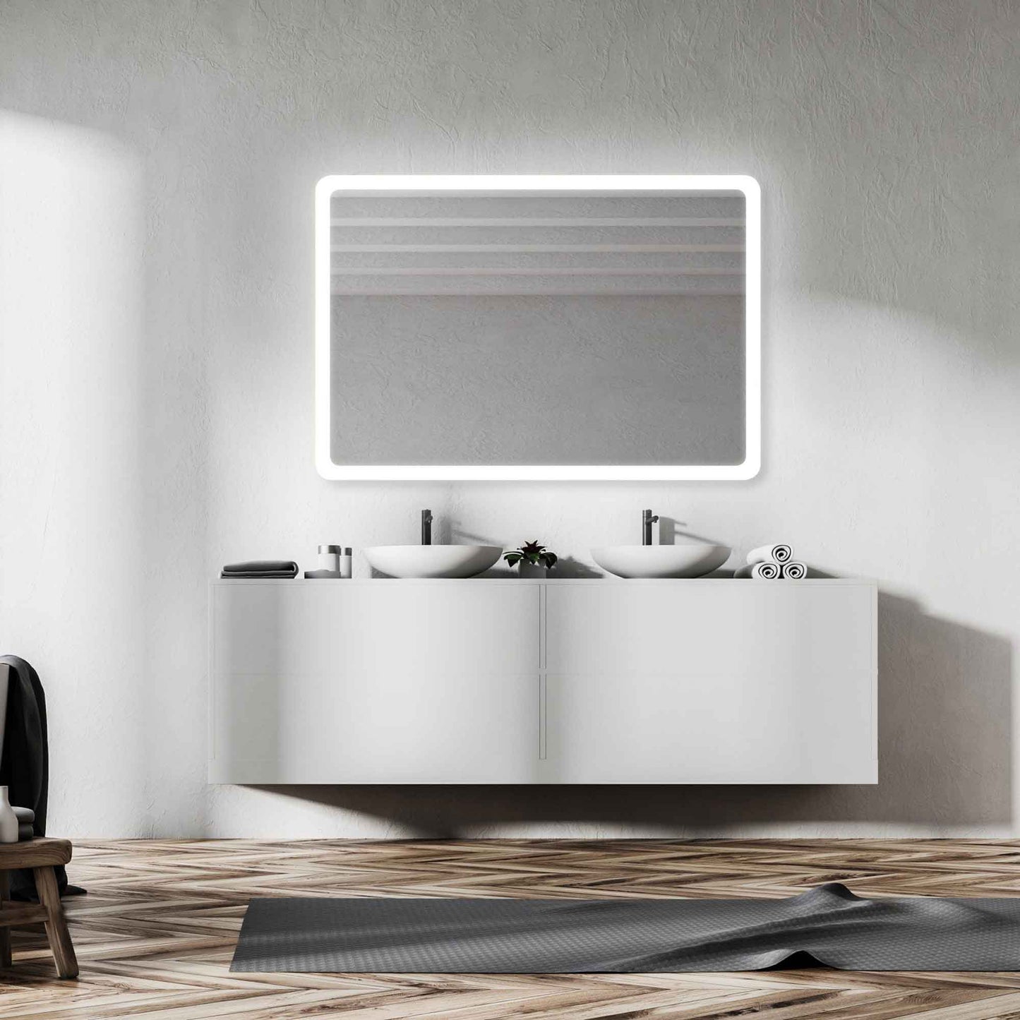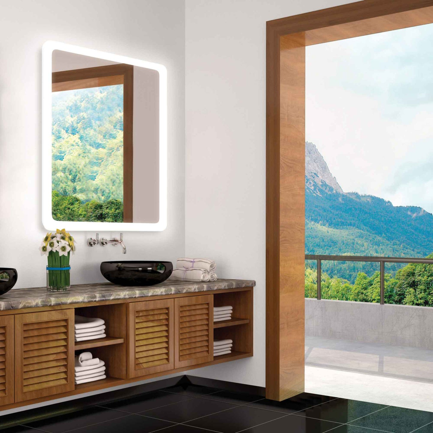 A modern, energy efficient design, the Eyla LED Lighted Mirror from Electric Mirror combines bright task lighting with wonderful ambient illumination suitable to virtually any vanity.