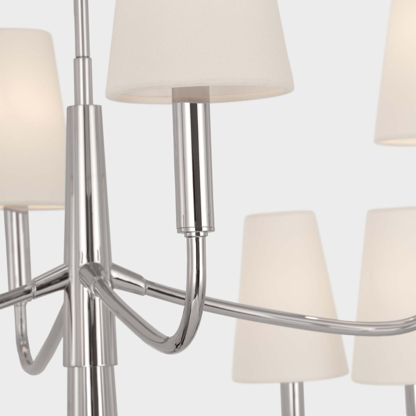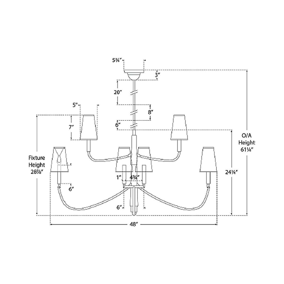 In a classic blend of motifs, the Farlane Chandelier from Visual Comfort Signature emulates both contemporary and transitional style. Embrace a festive look in lighting with metal construction and a tapered body, with charming accents such as gracefully curved arms and an ornate canopy accent piling on the personality. Shaded lamps bring conventional style to a solid fixture that works in dining rooms and foyers.