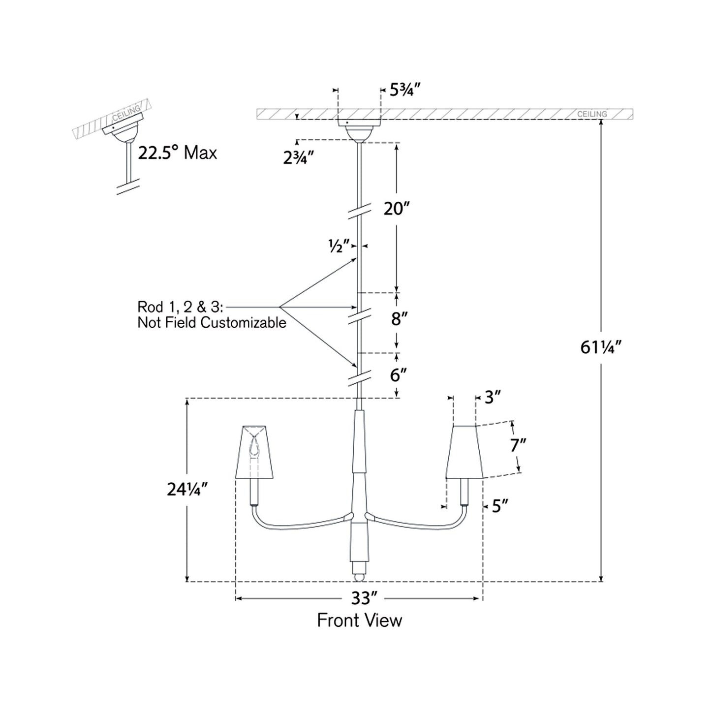 - Small: 6 X 40W 120V E12(candelabra base) Type B incandescent lamps (not included)