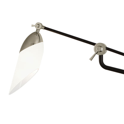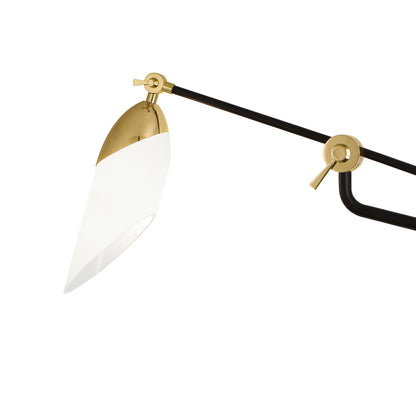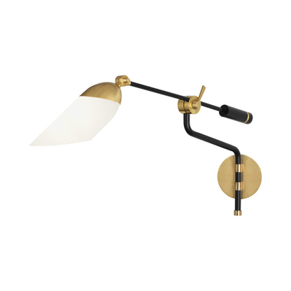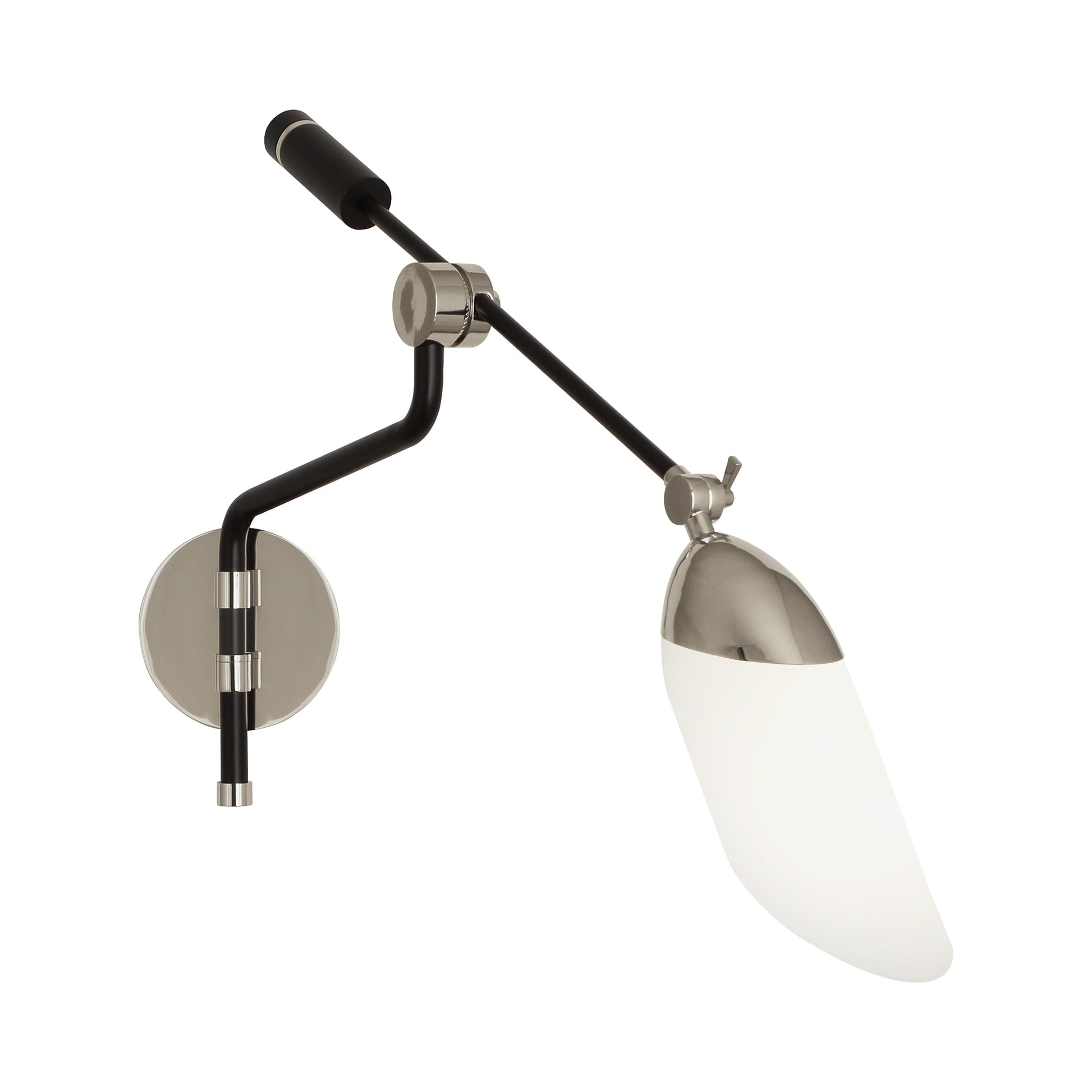 Industrial accents add a whimsical element to the Ferdinand Wall Light from Robert Abbey, building from a studio-inspired motif and culminating in a fluid silhouette with elegance suited to a classic custom space.