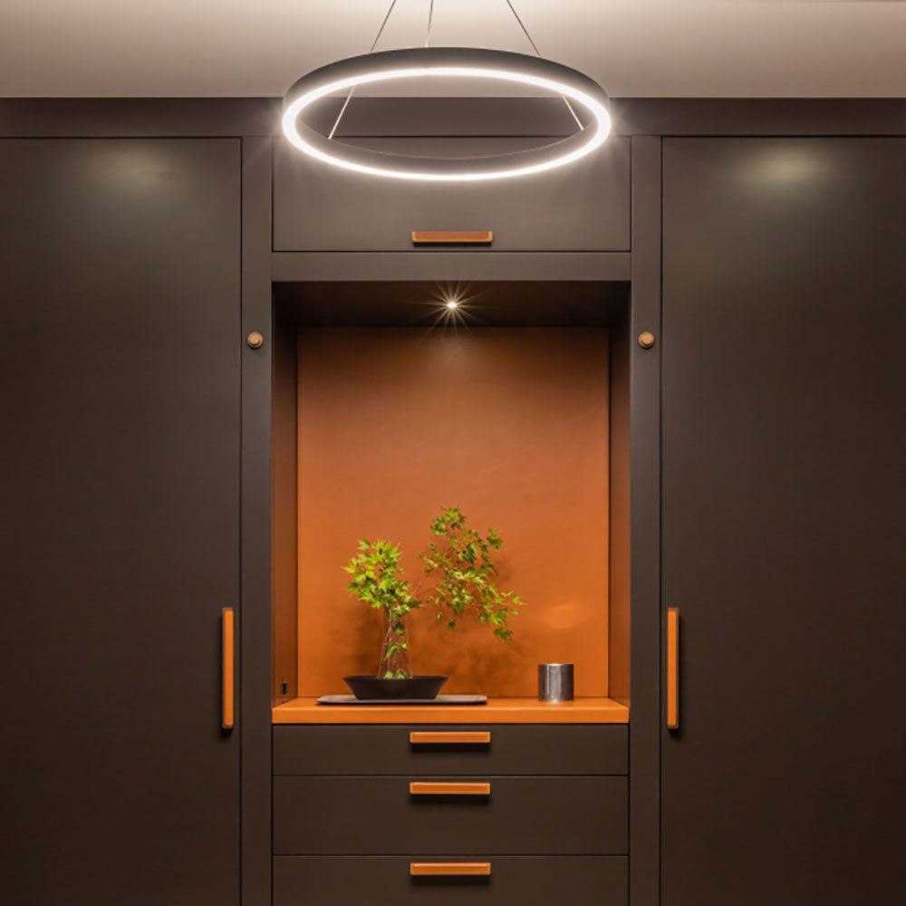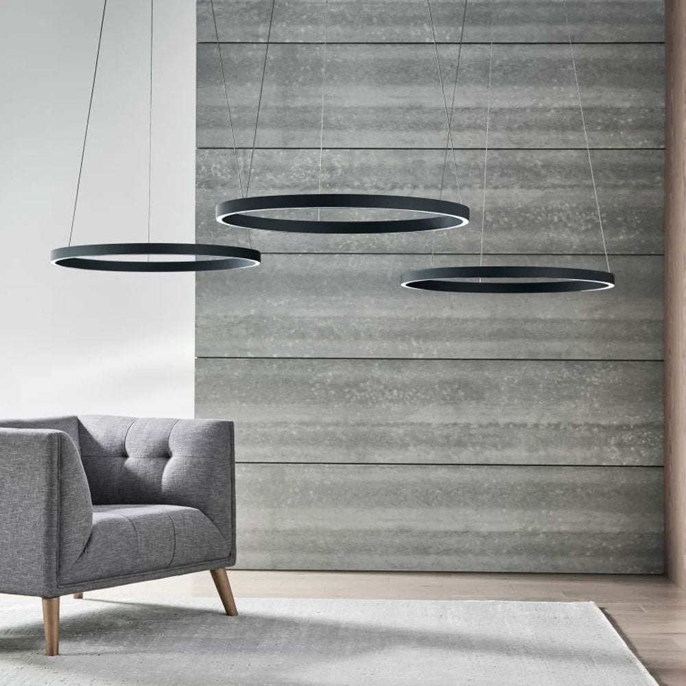 The Fiama LED Suspension Light from Visual Comfort Modern is a transitional style chandelier but with an entirely modern twist. At its most unadulterated form the Fiama is a slender metal ring that houses gently diffused upward and downward firing LEDs, providing functional light with an ultra-chic aesthetic. This modern work of art is available in two distinct sizes, 24" and 30" in diameter making it ideal for a wide range of lighting applications such as dining room lighting, foyer lighting and a host of commercial lighting applications. The Fiama pendant light ships with a fully dimmable integrated LED lamp.