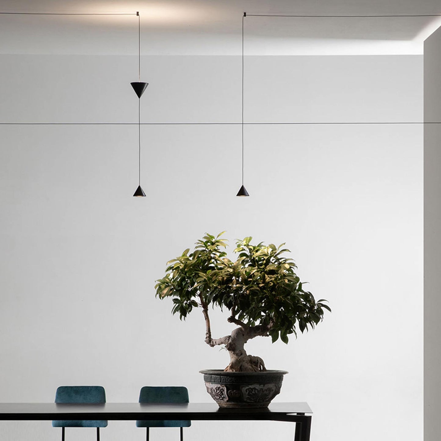 Elegant and modern, the Filomena LED Floor Lamp from Karman boasts sleek lines and versatile mounting positions. A petite shade dangles like a plumb bob, casting light wherever you desire.