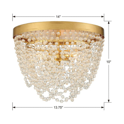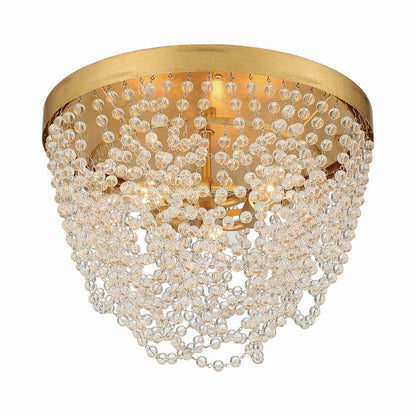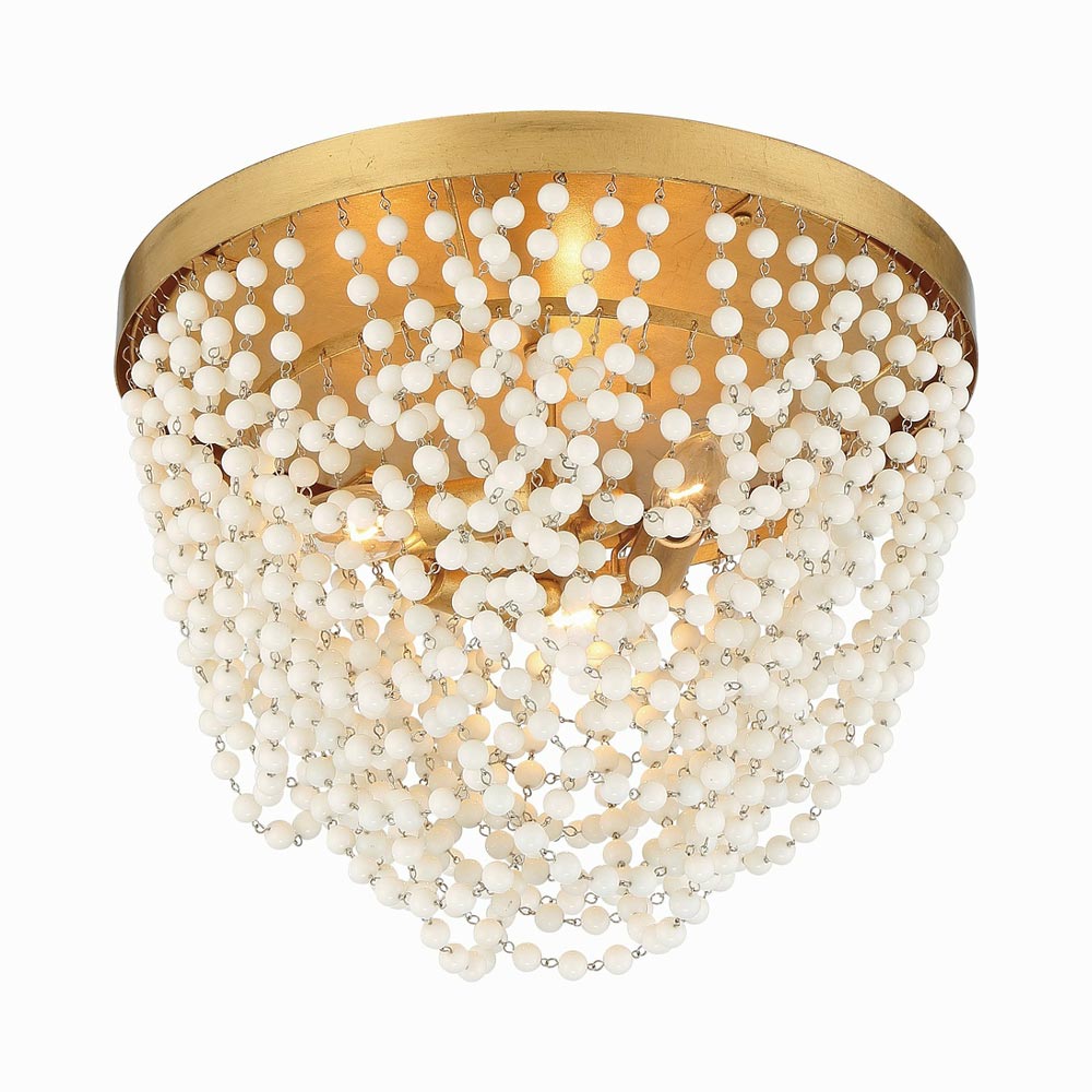 Showcasing fine artistry with a gallery vibe, the Fiona Flush Mount Ceiling Light from Crystorama delivers a decadent look with a low-key silhouette. Rich antique gold finish framing shines when this fixture radiates lighting captured and reflected by draped necklace-like strands of delicate glass.