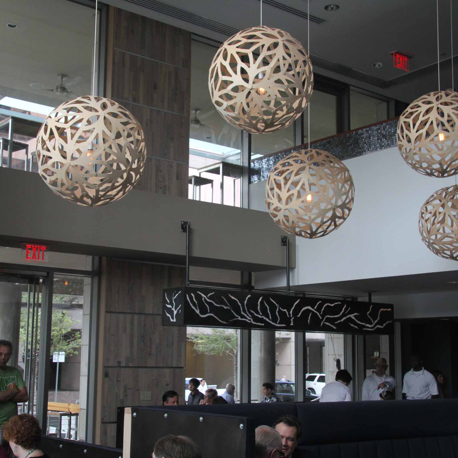 | David Trubridge uses sustainably sourced plywood, birch and bamboo along with non-toxic oils to craft open, airy and geometric designs with an organic vibe. Forms found in nature and in the native Maori culture of New Zealand, where the company has its headquarters, inspire the creations. Some pendants, for example, resemble clouds while others look like coral reefs. The results are more than functional lighting fixtures – they set nighttime ambience and serve as daytime showpieces. The fixtures then are shipped in eco-friendly packaging. David Trubridge’s unique style helped spur the “raw sophistication” trend that since has taken root internationally. The company also donates to environmental causes. Find the perfect masterpiece for your intimate or grand space, as a single piece or a large installation, at David Trubridge. |
