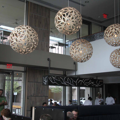 Interwoven fronds create petals the define the uniquely engaging Floral XL Pendant Light from David Trubridge. A gorgeous spherical silhouette casts magical shadows as its large-scale design makes this a stellar choice from vast commercial and residential spaces.