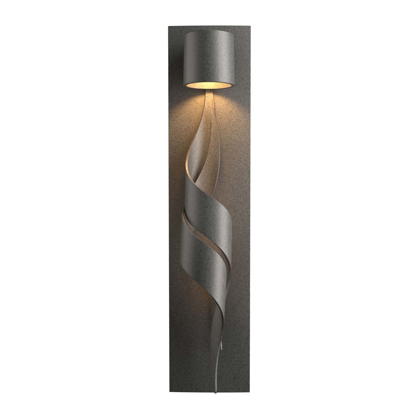 Bold metal accents spiral to create an instant focal point with the Flux Dark Sky Friendly Outdoor Wall Light from Hubbardton Forge.