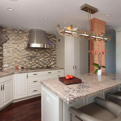 A cluster of metal ribbons creates a statement-making piece on the Folio LED Pendant Light from Hubbardton Forge.