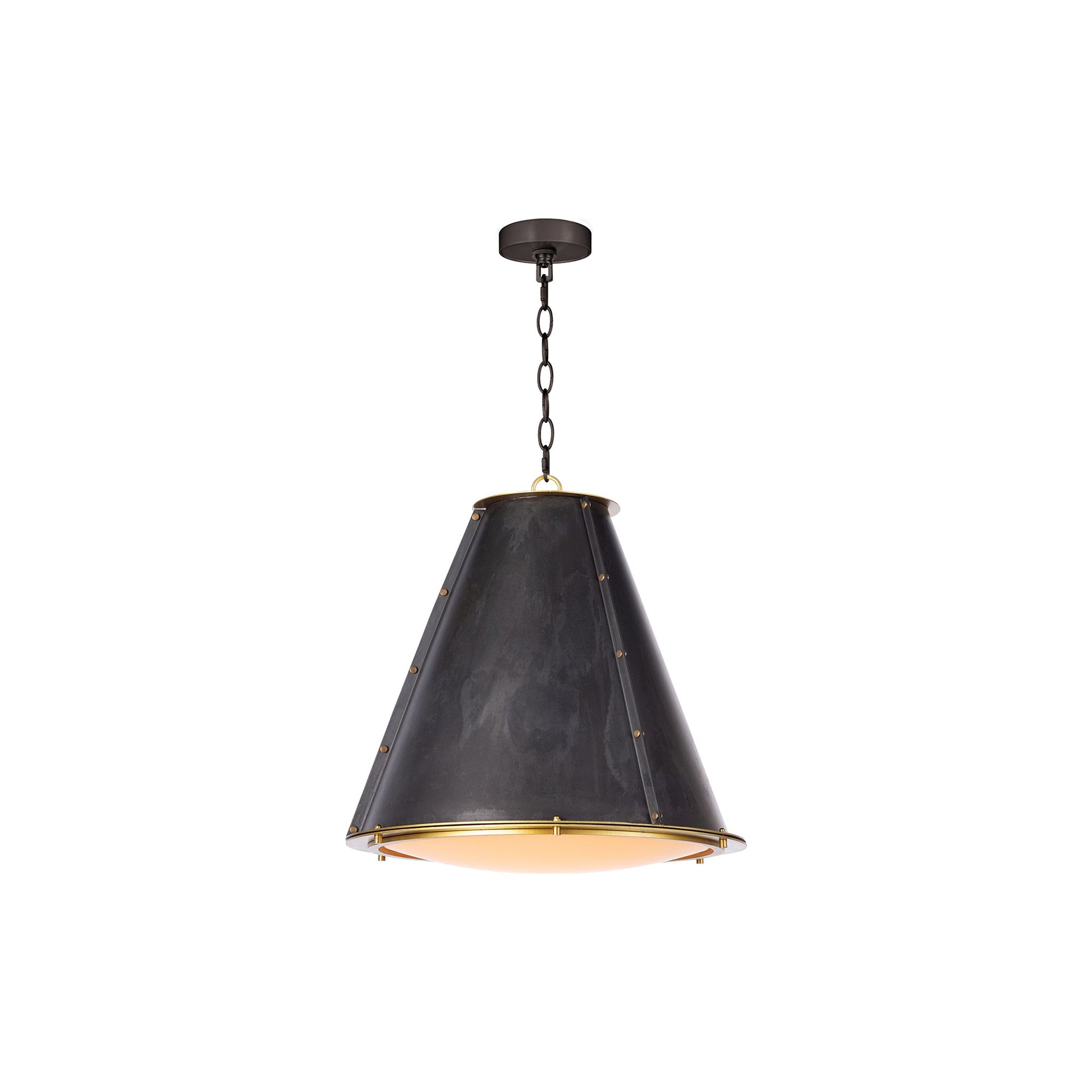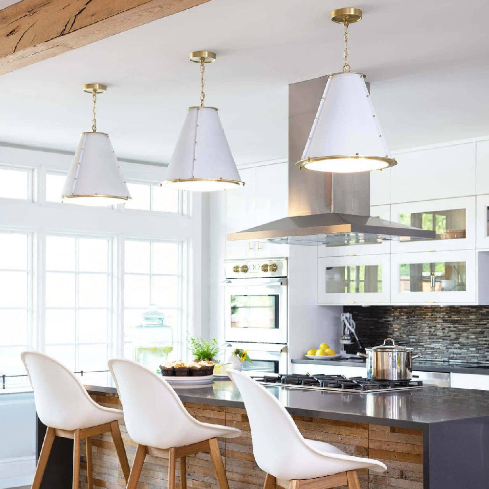 Exotic beauty repurposes industrial attitude in a fixture destined for greatness. The French Maid Chandelier from Regina Andrew follows a conical silhouette with a dramatic metal shade rimmed with gleaming metal trim and subtle accent studs. Awash in ambient lighting, this lamp and its diffuser blend function and fashion.