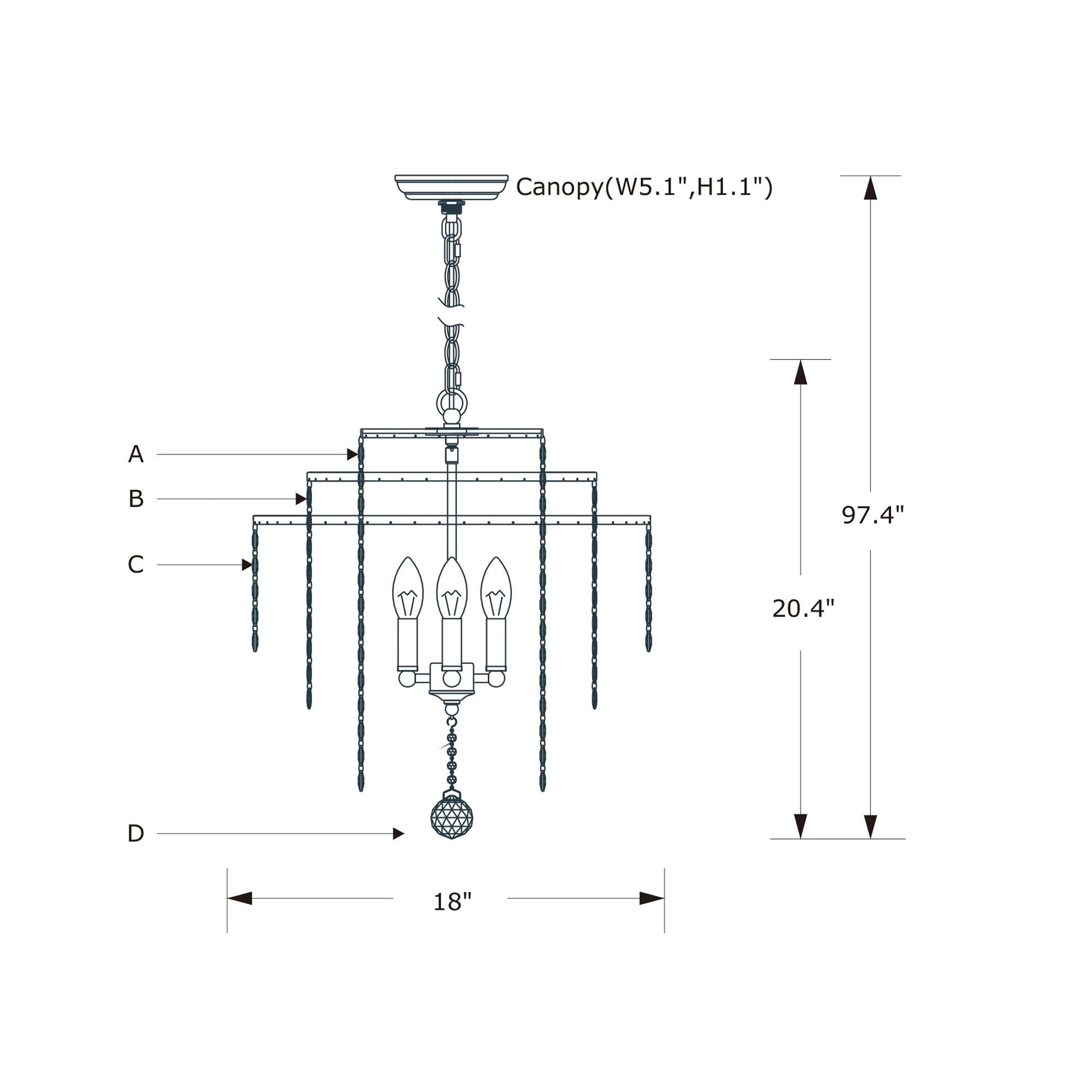 • 4-Light: 4 X 60W 120V E12(candelabra base) Type B incandescent lamps (not included)