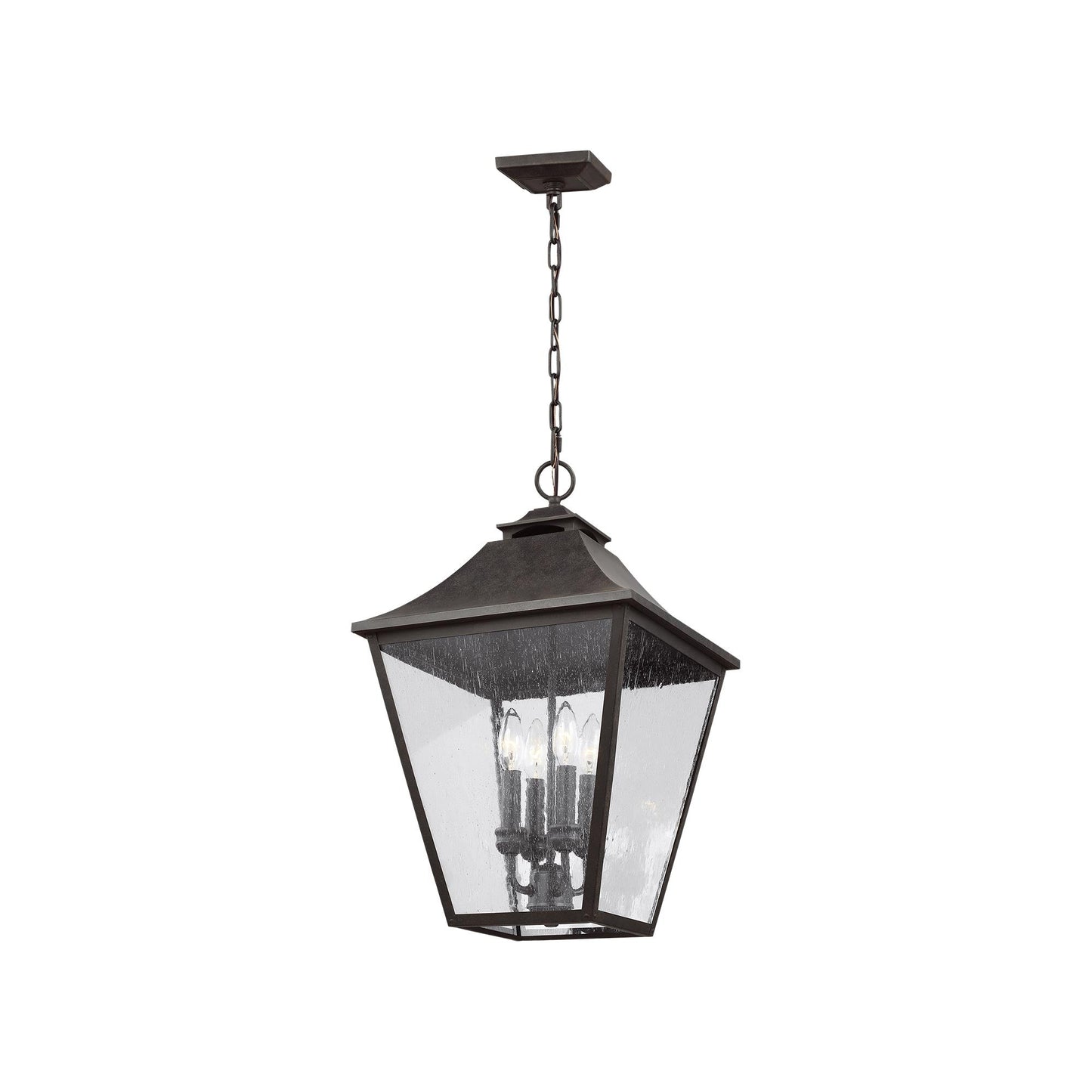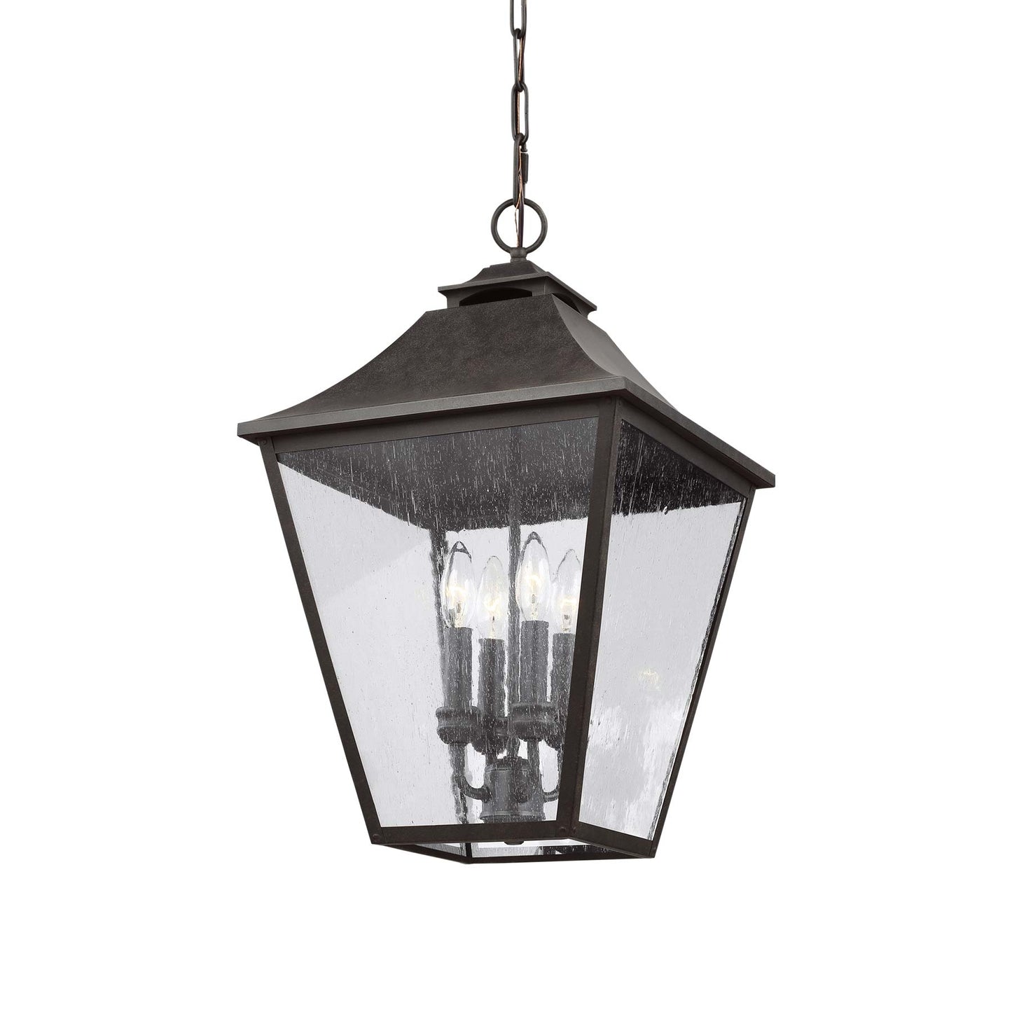 Cast a warm and welcoming glow across a grand front entry or over a covered patio living space with the timeless elegance of the Galena Outdoor Pendant Light from Visual Comfort Studio. A classic lantern silhouette pairs sleek curved with tapering, textured glass panes that diffuse the light from four bulbs within, creating a soft, inviting glow.