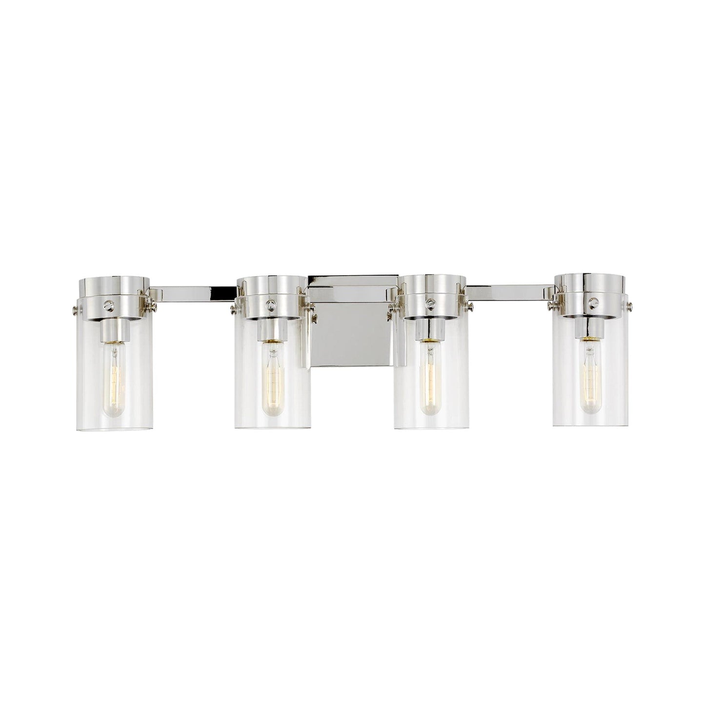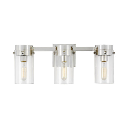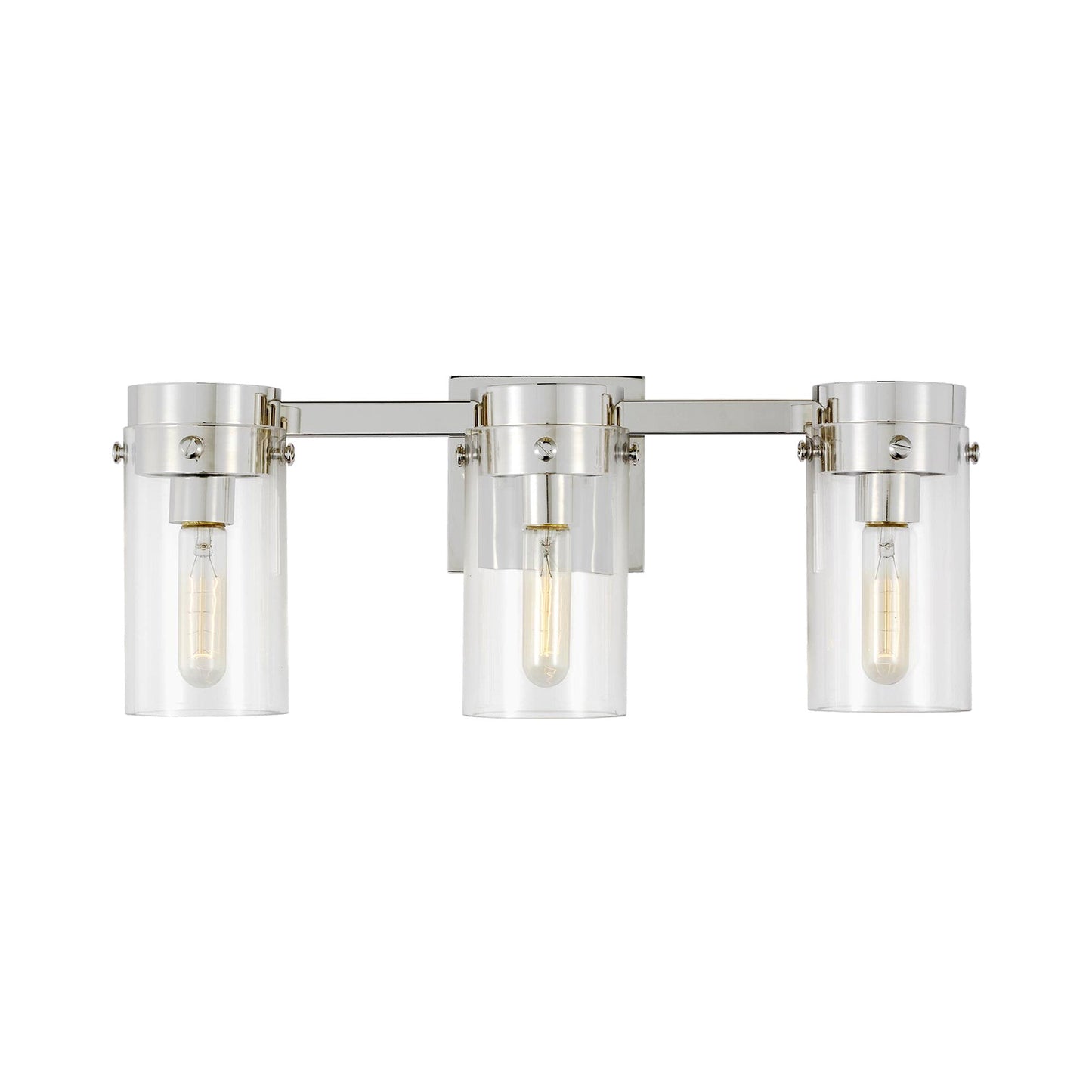 The Garrett Bath Vanity Light provides abundant light for your bath vanity, while adding a layer of today's style to your interior design. Garrett from Chapman & Myers for Visual Comfort Studio features cylindrical Clear Extruded Glass shades paired with rich Burnished Brass or contemporary Polished Nickel detailing and linen shades on the lamps. This striking blend of metal and glass, sophisticated in its simplicity, is both industrial and glamorous. It is sure to inspire a higher level of style wherever it is placed.