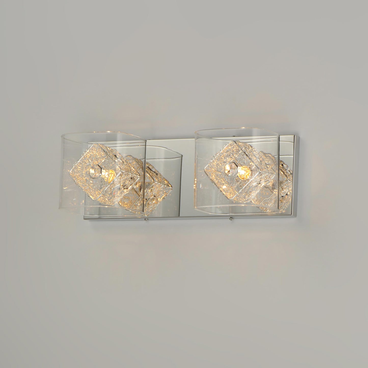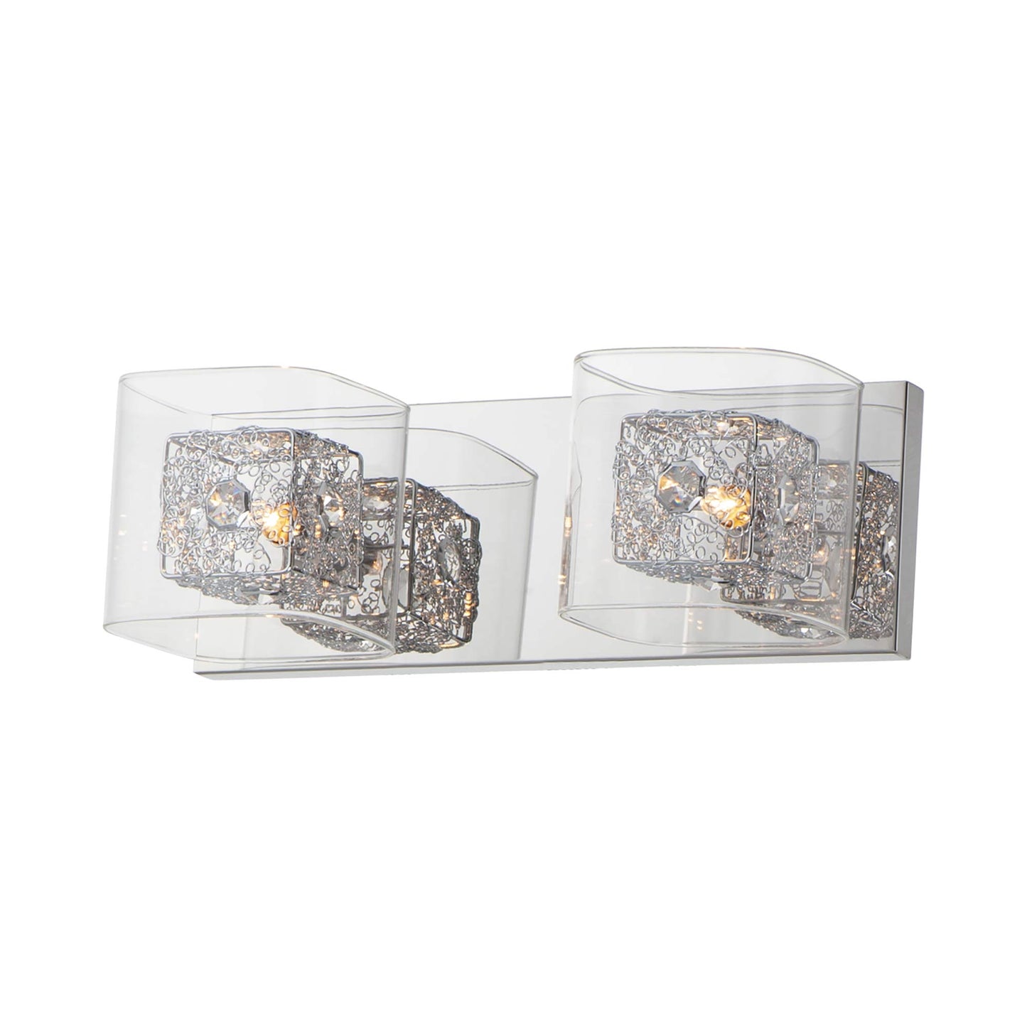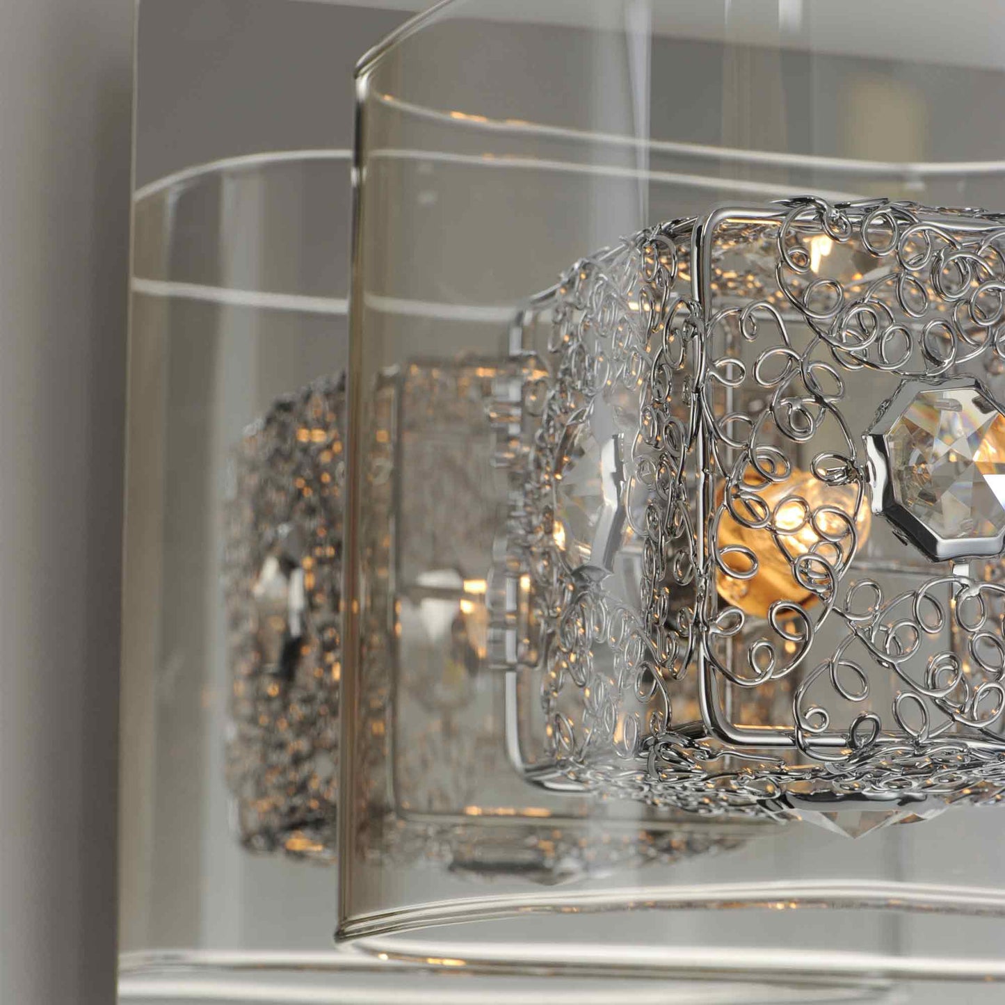 With the illusion of floating on air, the Gem Collection offers a touch of mystery to any room. Intertwined metal cubes are encased by clear crystal cubes, allowing xenon light to shine from within and bursting out through the embellished crystal. Inner metal cubes come in two options, polished chrome (PC) and silver (SV).