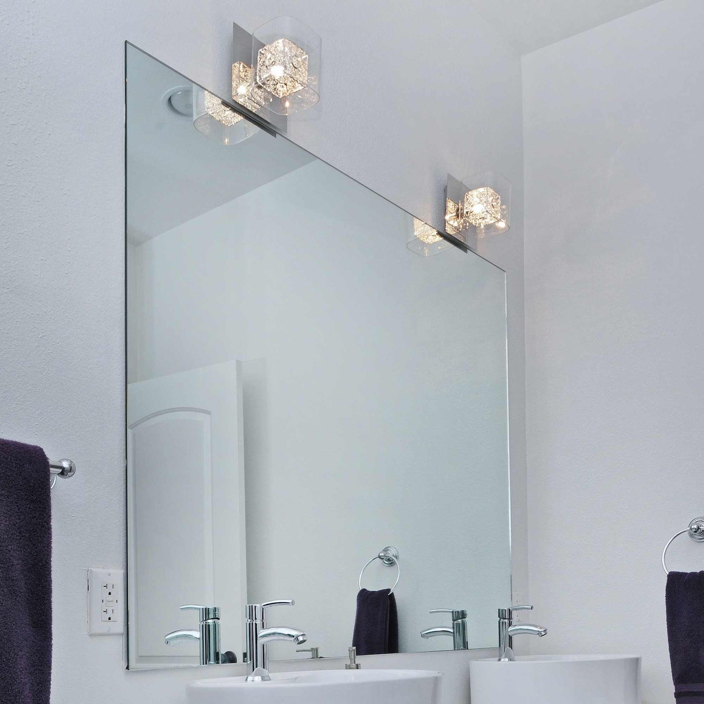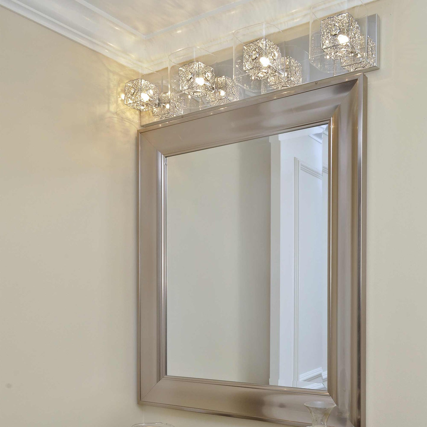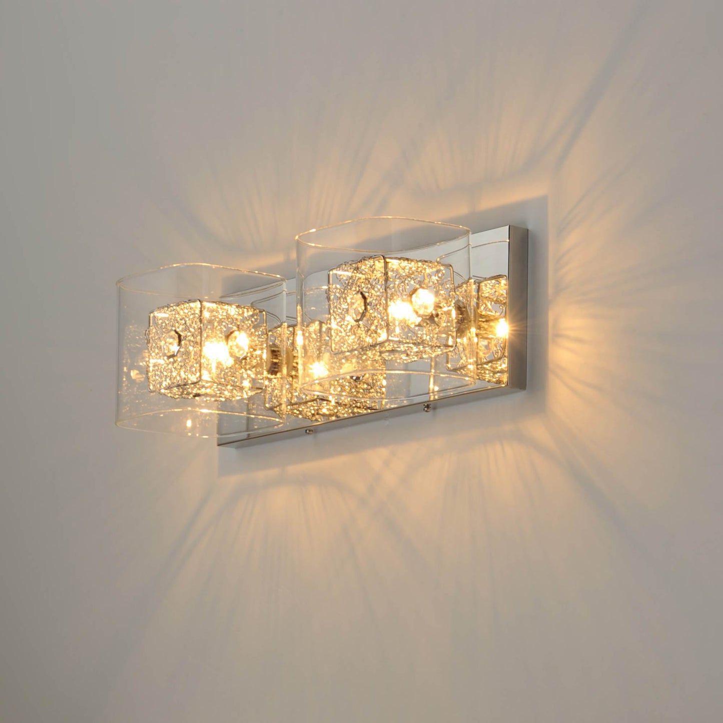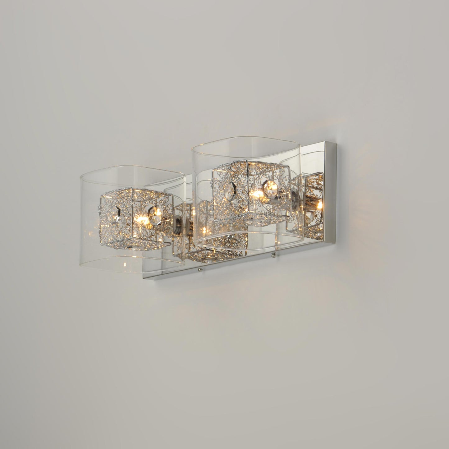 With the illusion of floating on air, the Gem Collection offers a touch of mystery to any room. Intertwined metal cubes are encased by clear crystal cubes, allowing xenon light to shine from within and bursting out through the embellished crystal. Inner metal cubes come in two options, polished chrome (PC) and silver (SV).