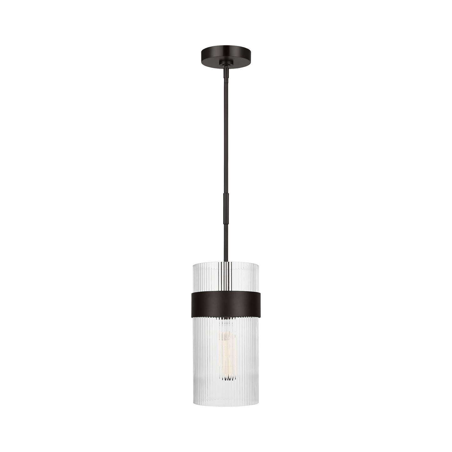 Emphasize sophistication and traditional ambiance with the textured glass and classic details of the Geneva Pendant Light from Visual Comfort Studio. Beautiful over any living space, the Geneva stands out with a gleaming metallic finish and a sleek, simplified silhouette. A metal collar and slim suspension only enhance its slender, vertical silhouette.