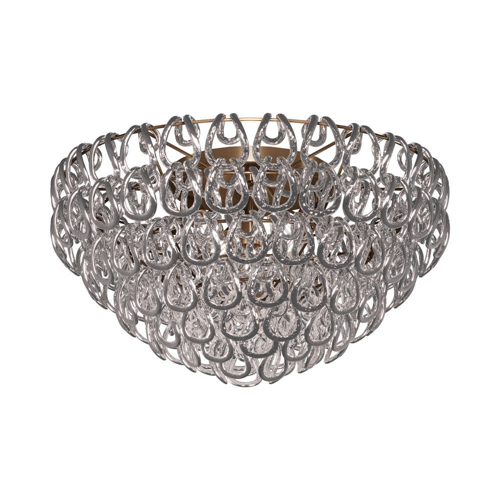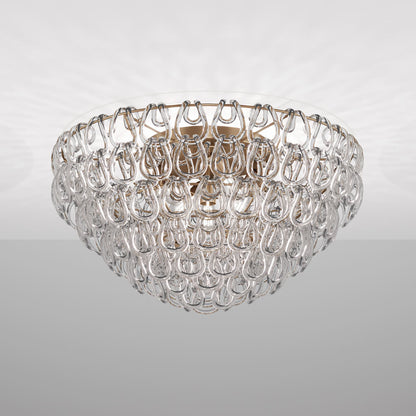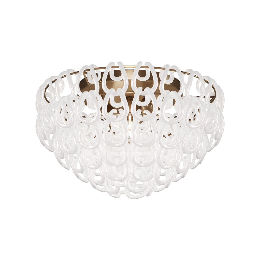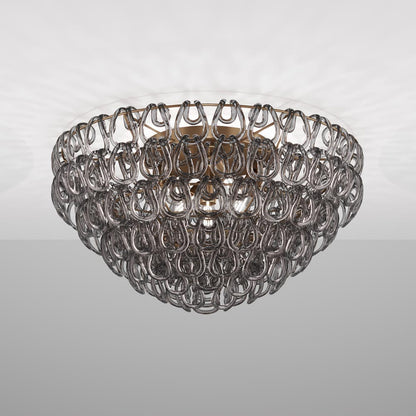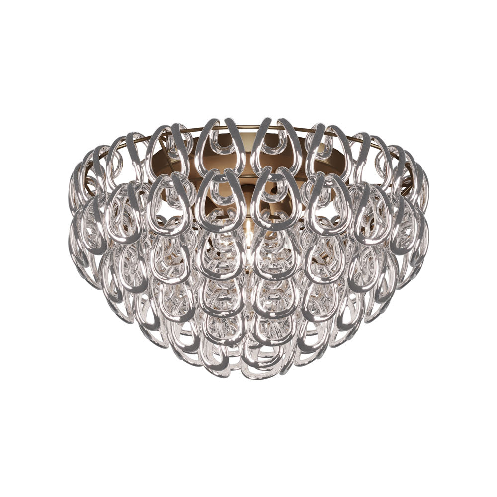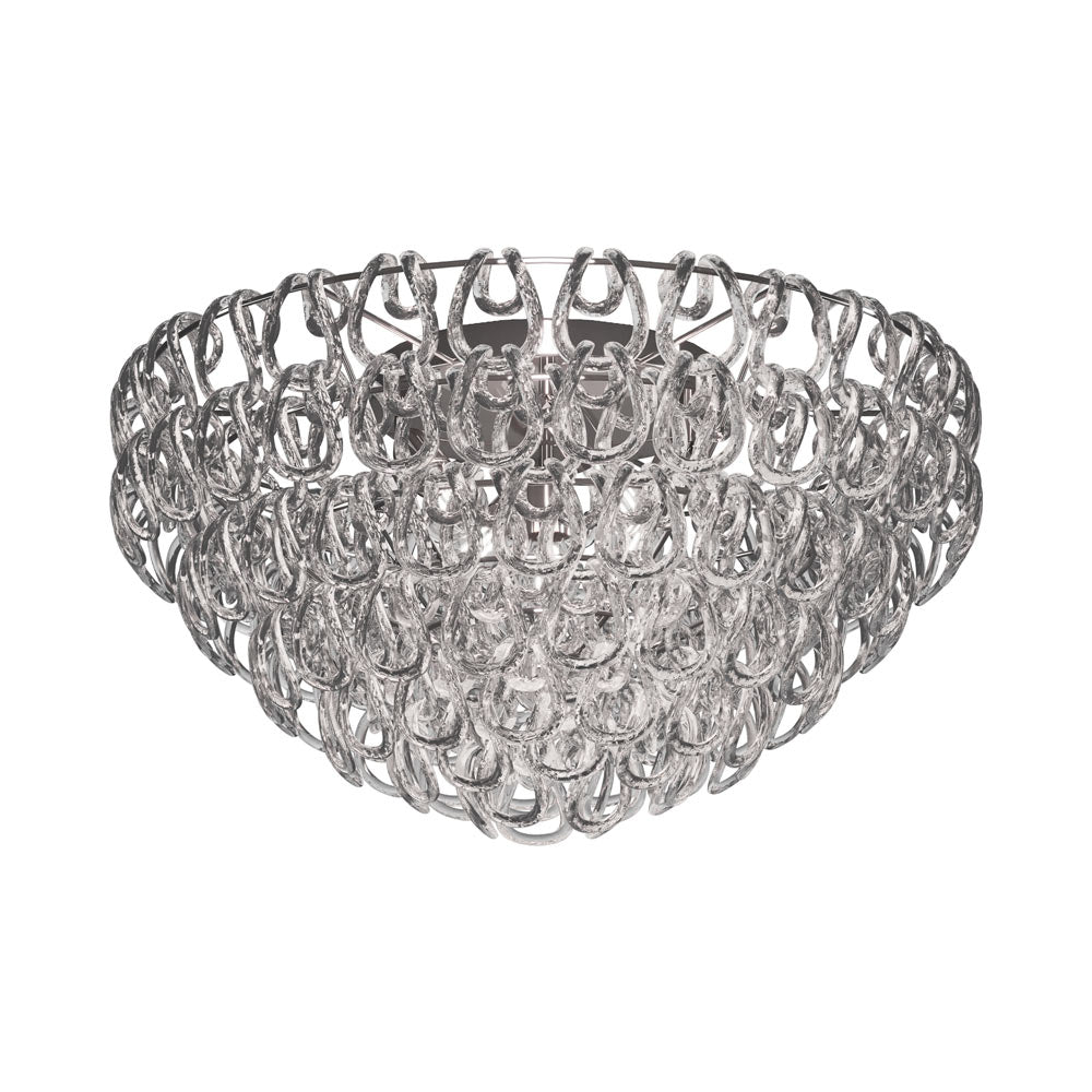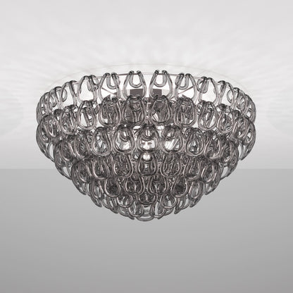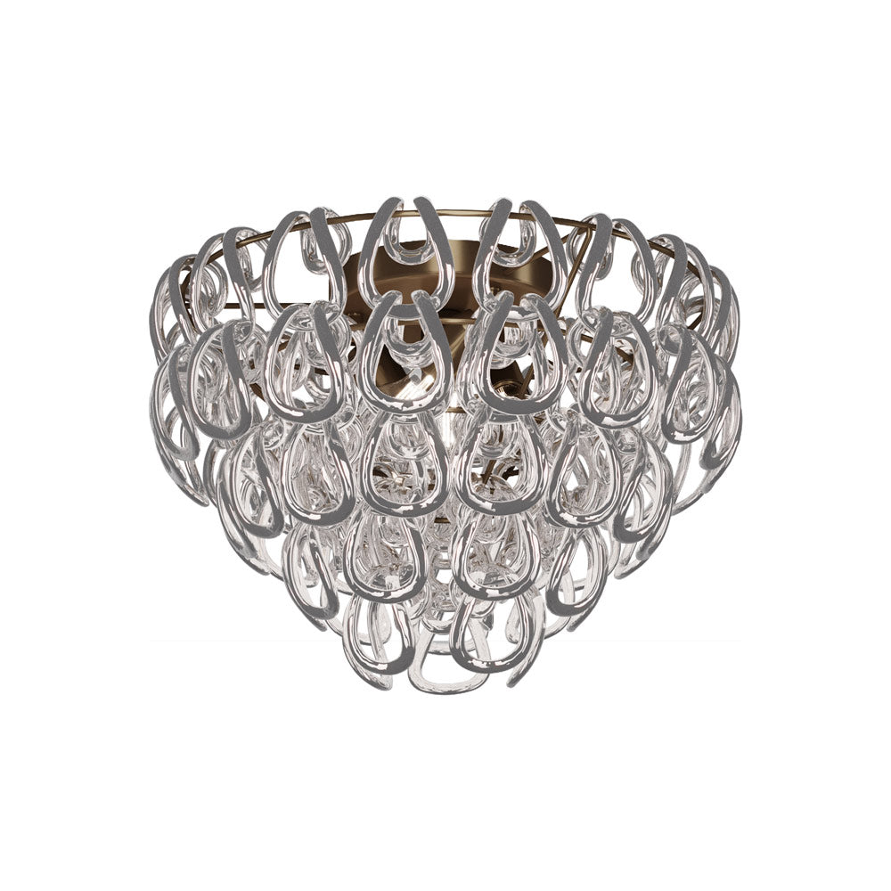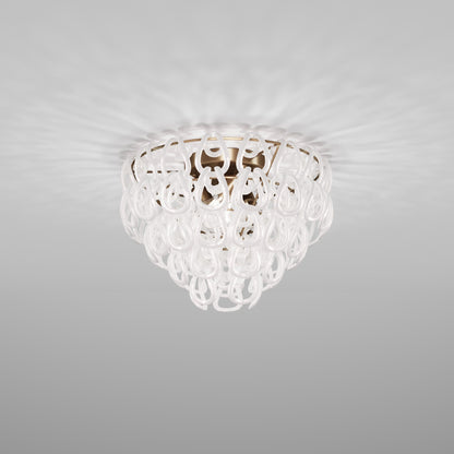 A unique blend of fine art and boho style adds a chic look to any space when the Giogali Flush Mount Ceiling Light from Vistosi becomes a central focus. Tapered silhouetting follows rows of delicate glass loops aligned around metal framing, offering a romantic effect in light reflection and transforming a living space into a gallery setting.