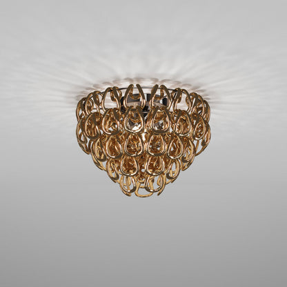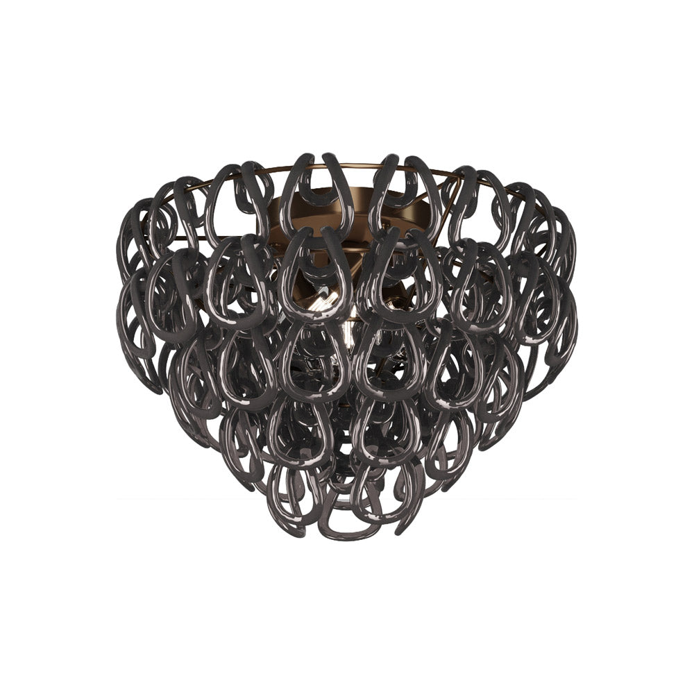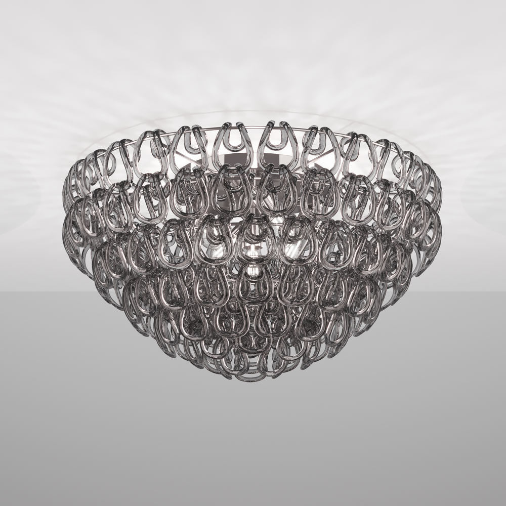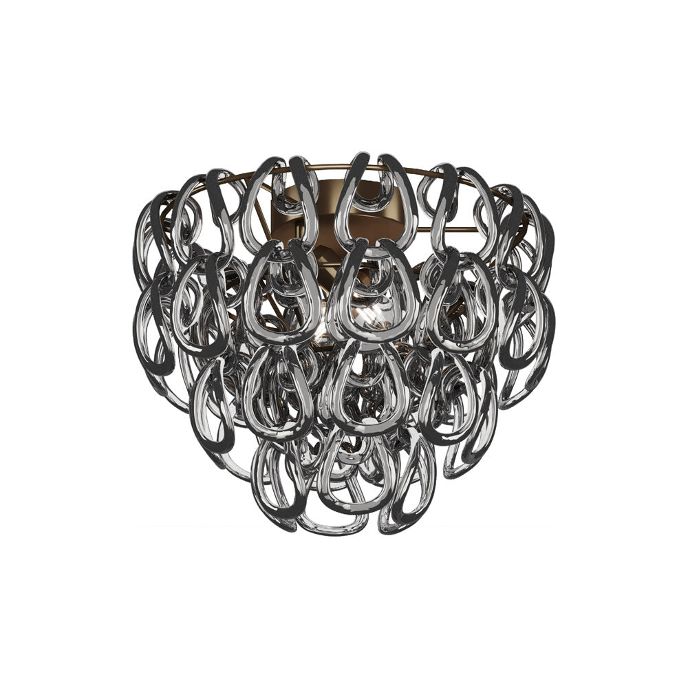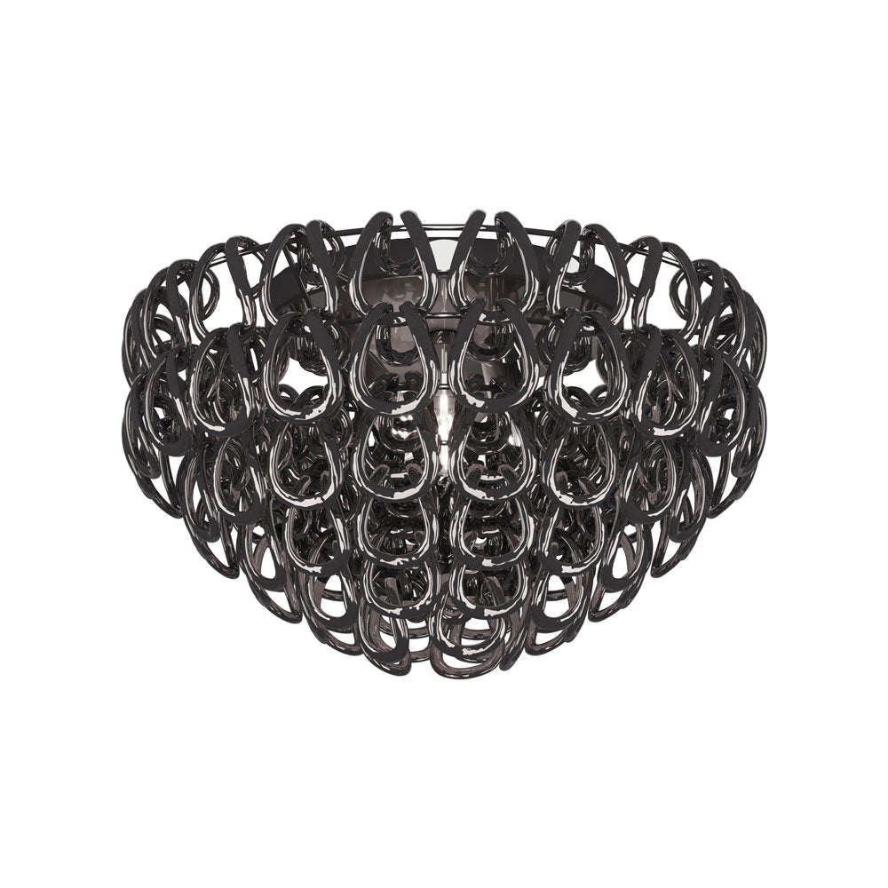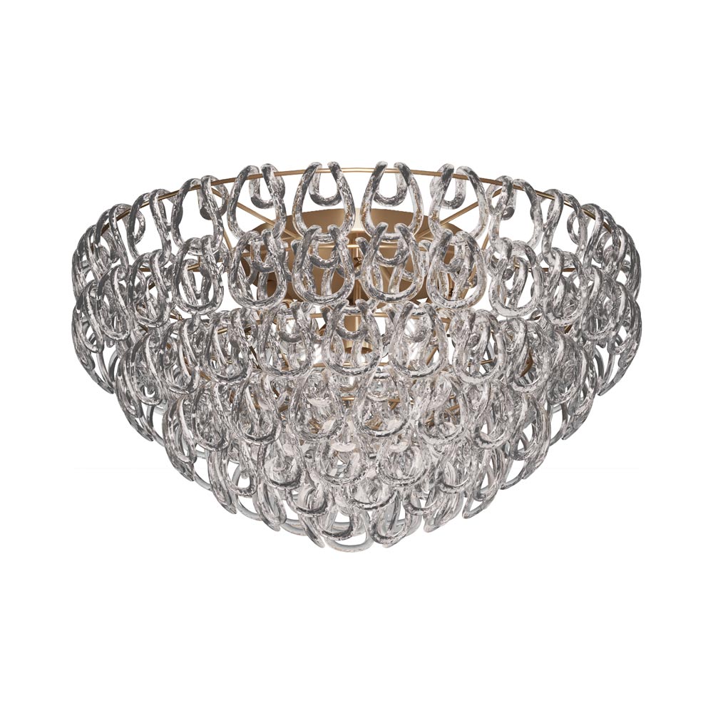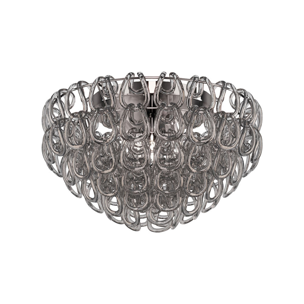 A unique blend of fine art and boho style adds a chic look to any space when the Giogali Flush Mount Ceiling Light from Vistosi becomes a central focus. Tapered silhouetting follows rows of delicate glass loops aligned around metal framing, offering a romantic effect in light reflection and transforming a living space into a gallery setting.